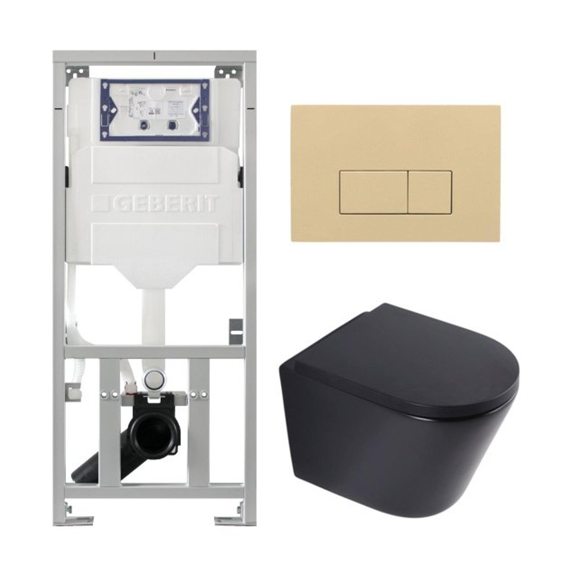 QeramiQ Dely Ensemble WC - 36.3x51.7cm - sortie profonde - sans bride - réservoir encastré Geberit UP320 - abattant WC softclose 35 mm - plaque de commande beige - boutons rectangulaires - noir mat