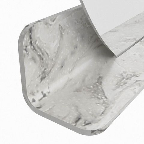 Le plan de couverture, avec ses coins arrondis fluides, offre un espace de rangement pratique pour vos besoins quotidiens. Le miroir est subtilement encastré dans le plan de couverture, ce qui donne une apparence moderne et élégante.