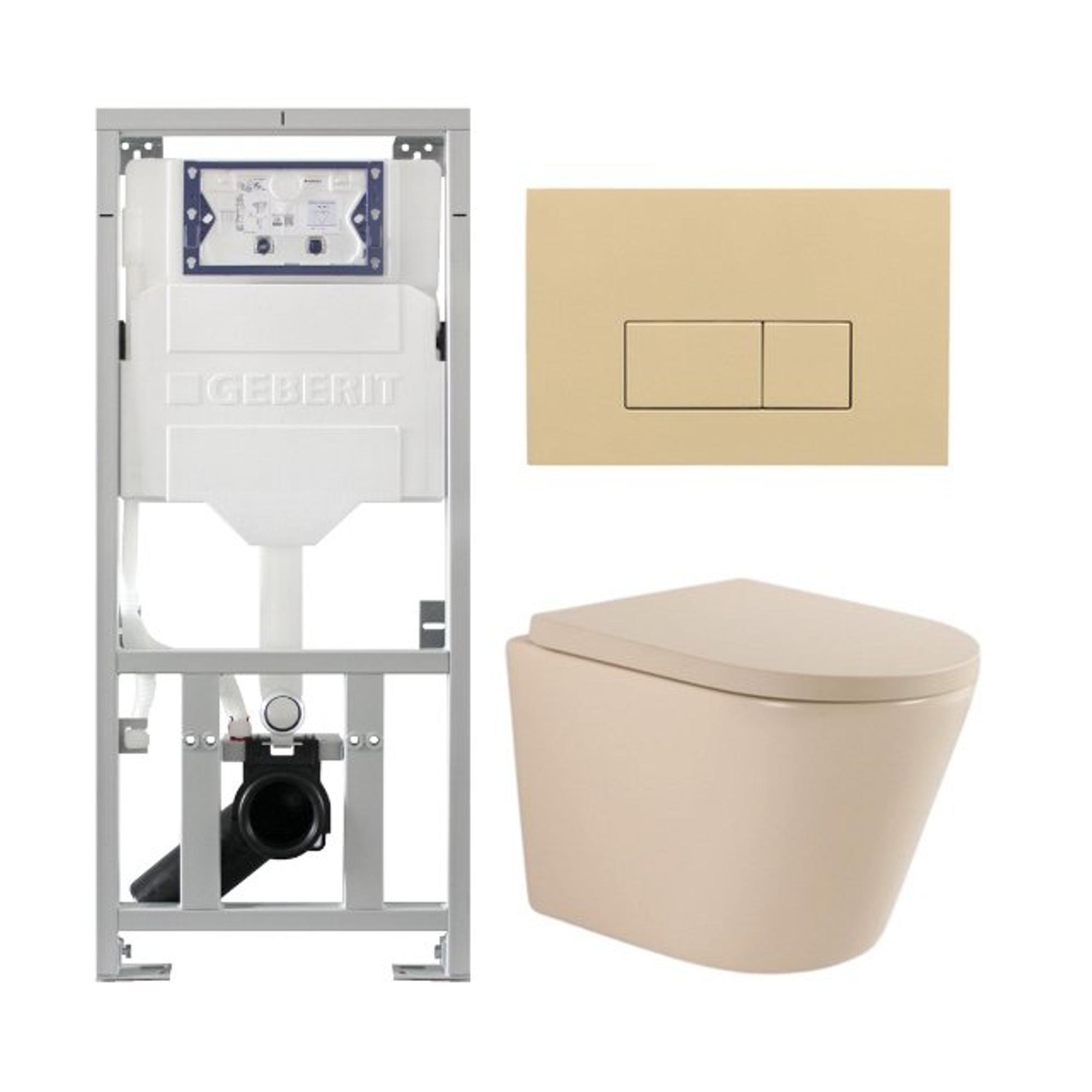 QeramiQ Dely Ensemble WC - 36.3x51.7cm - fond profond - sans bride - réservoir encastré Geberit UP320 - abattant de WC softclose - plaque de commande beige - boutons rectangulaires - beige mat