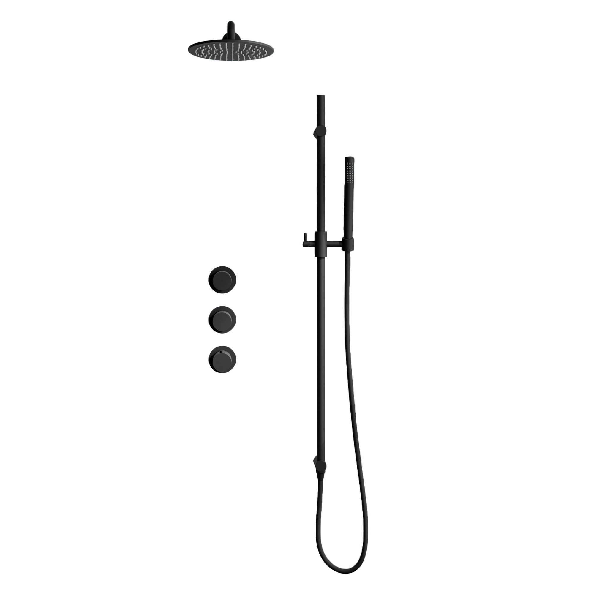 Fortifura Nebbio Ensemble de douche pluie - robinet encastré - élément encastré - barre coulissante - flexible de douche métal - douchette à main sur barre - bras mural 35cm - pomme de douche ronde - noir mat
