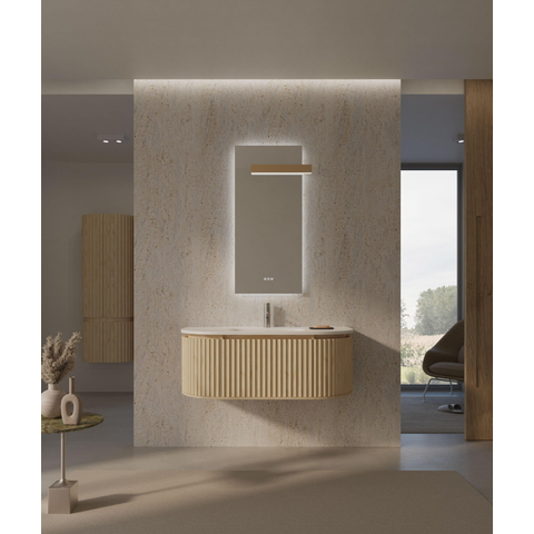 Le meuble haut Thebalux Epoque est un modèle d'élégance. Avec ses lignes raffinées et son placage en Acrylique Blanc Ribbd, ce meuble dégage un charme intemporel. Les deux portes rondes de chaque côté ajoutent un élément ludique au design, tout en assurant un accès facile à tous vos articles de salle de bain.