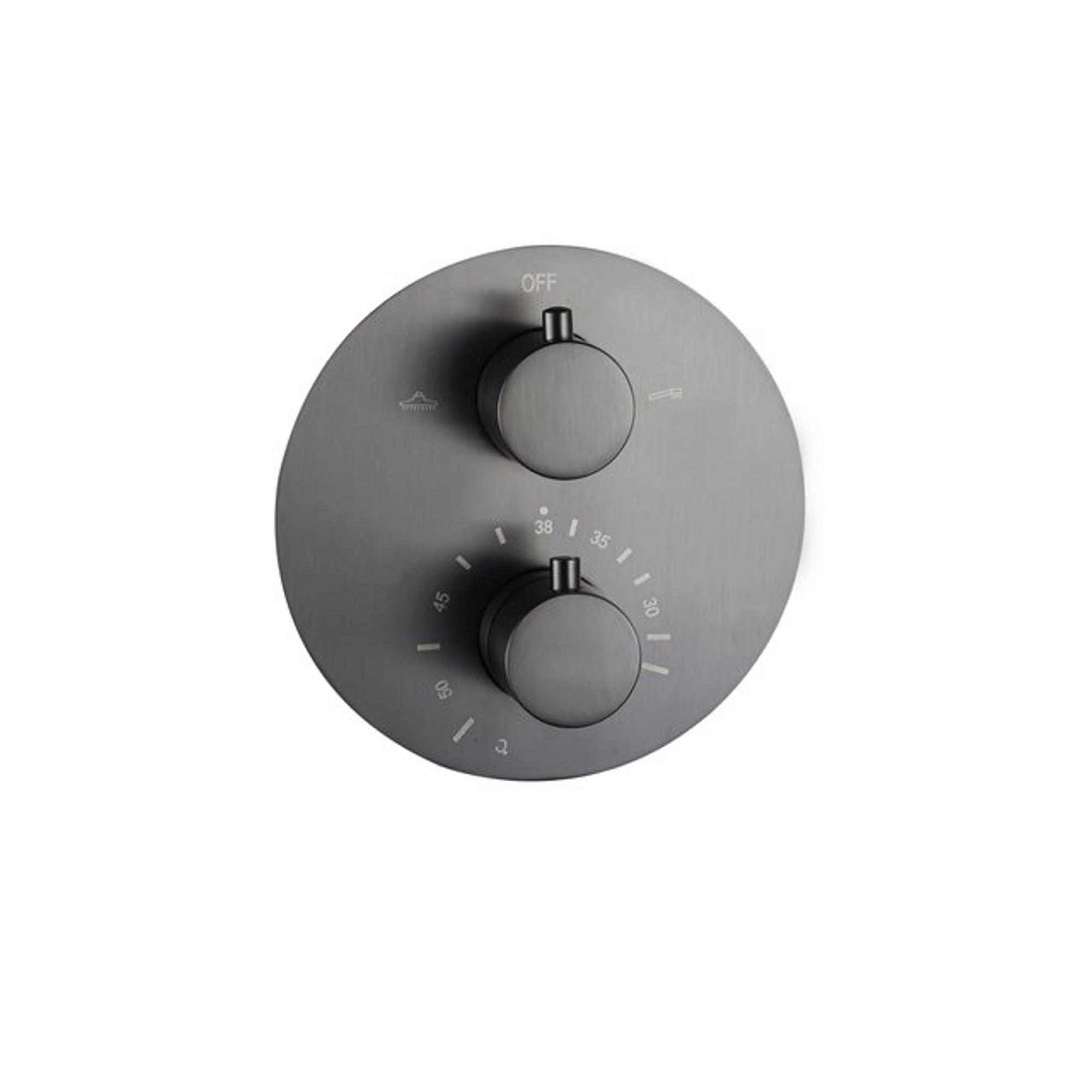 Fortifura Calvi Ensemble de douche à encastrer - rond - thermostatique - bras plafond - glissière - douche principale de 25 cm - douchette à main - flexible de douche en métal - Gunmetal PVD brossé