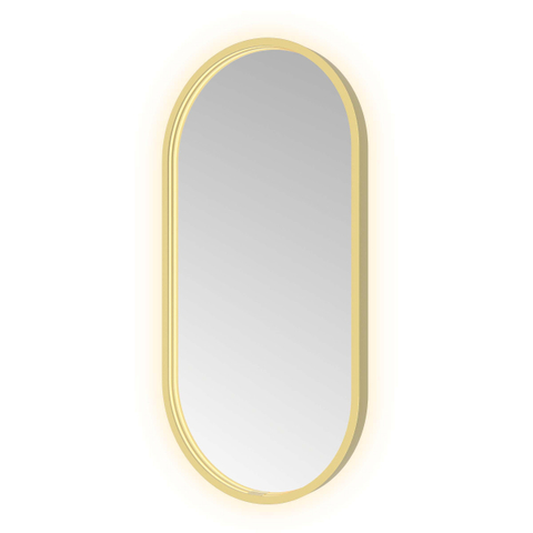 - Design ovale avec cadre en aluminium et finition PVD en laiton brossé pour un aspect luxueux