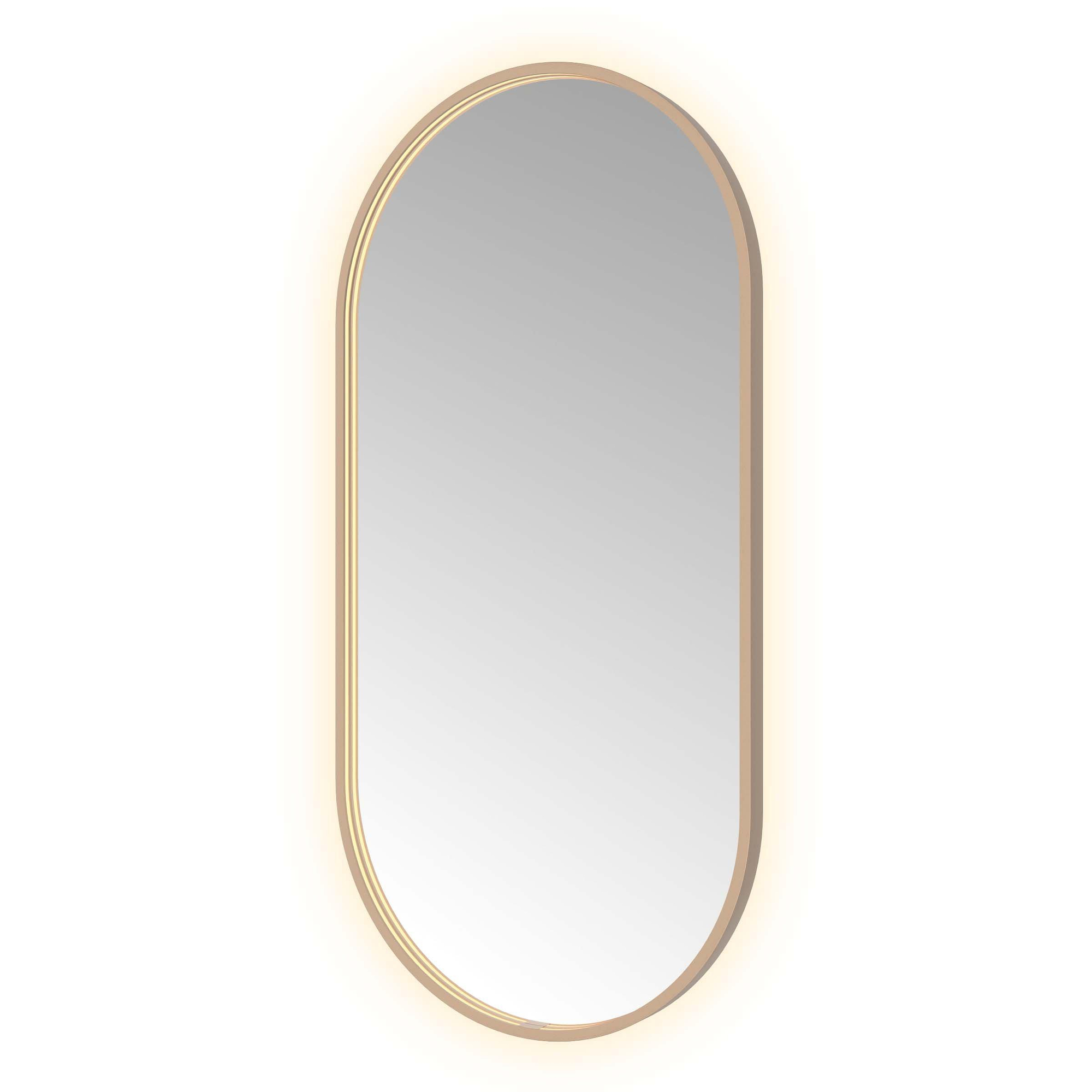 - Forme ovale avec un élégant cadre en aluminium en laiton brossé PVD