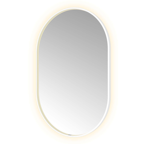 - Forme ovale avec un cadre en aluminium blanc mat et épuré pour une apparence moderne