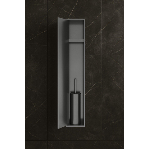 La finition PVD gunmetal brossé donne à la niche un aspect contemporain et luxueux qui s'harmonise facilement avec divers styles de salle de bains. Cette teinte sombre subtile ajoute une touche de raffinement sans dominer. Le matériau a été soigneusement choisi pour être non seulement esthétique, mais aussi résistant à l'humidité et aux taches. Ainsi, la niche conserve son bel aspect même dans un environnement humide. Avec ce détail élégant, vous transformez un objet d'usage quotidien en un accent design qui complète votre salle de bains.