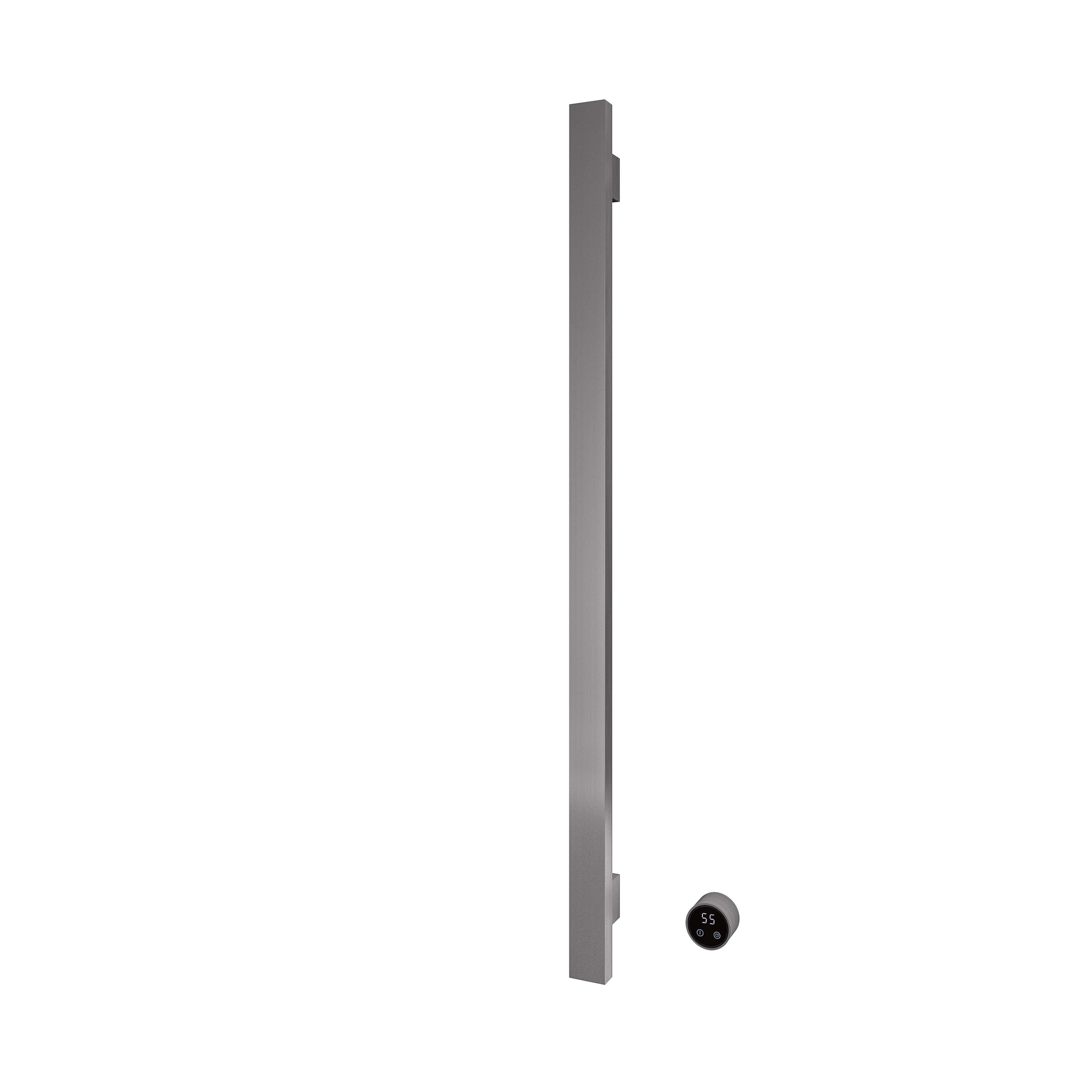 Ce radiateur sèche-serviettes vertical et élancé est idéal lorsque vous disposez de peu de largeur de mur, mais que vous souhaitez tout de même avoir une serviette chaude et luxueuse à portée de main. Avec son design carré et épuré et sa couleur gunmetal brossé élégante, il s'intègre parfaitement dans les salles de bains modernes, les toilettes et les salles de bains attenantes où le design et la fonctionnalité doivent aller de pair. Grâce à son format compact, vous pouvez le placer aisément à côté d'un lavabo, dans une niche ou près de la douche, sans qu'il ne domine l'espace. Dans le même temps, la barre horizontale unique offre juste assez de place pour faire sécher et préchauffer votre serviette préférée. Vous cherchez un radiateur sèche-serviettes électrique élégant qui combine ambiance, confort et finition haut de gamme ? Alors c'est un choix judicieux pour donner à votre salle de bains une allure raffinée digne d'un hôtel.