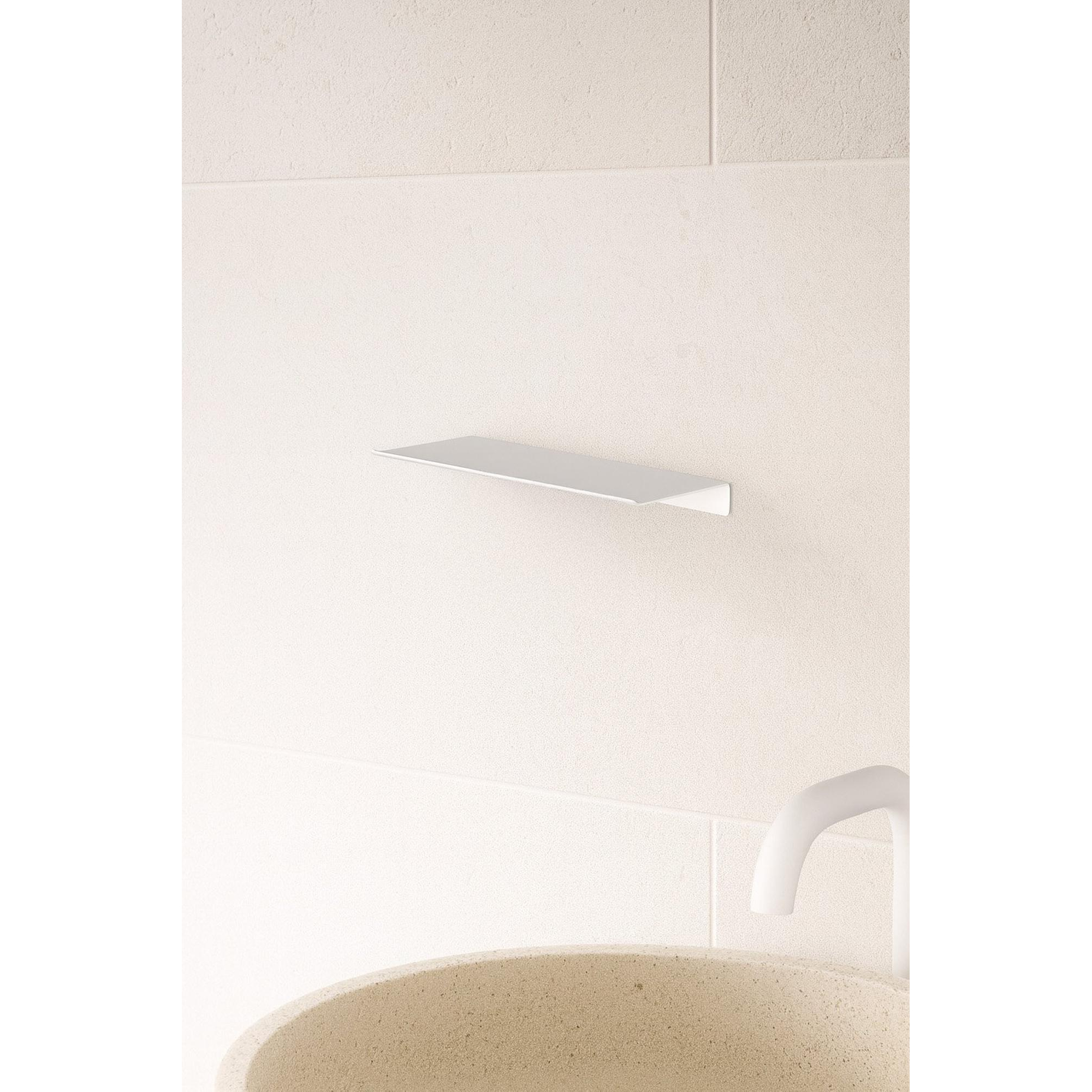 Avec sa finition blanche mate et son design minimaliste, cette tablette apporte une touche fraîche et moderne à votre salle de bains. Son design subtil fait en sorte que la tablette ne domine pas, mais s’harmonise justement avec les autres éléments de la pièce. L’ambiance reste ainsi calme et accueillante, tout en profitant d’un espace de rangement pratique. Sa couleur neutre permet en outre de la combiner facilement avec différentes couleurs et matériaux, vous offrant une grande liberté dans le style de votre salle de bains.