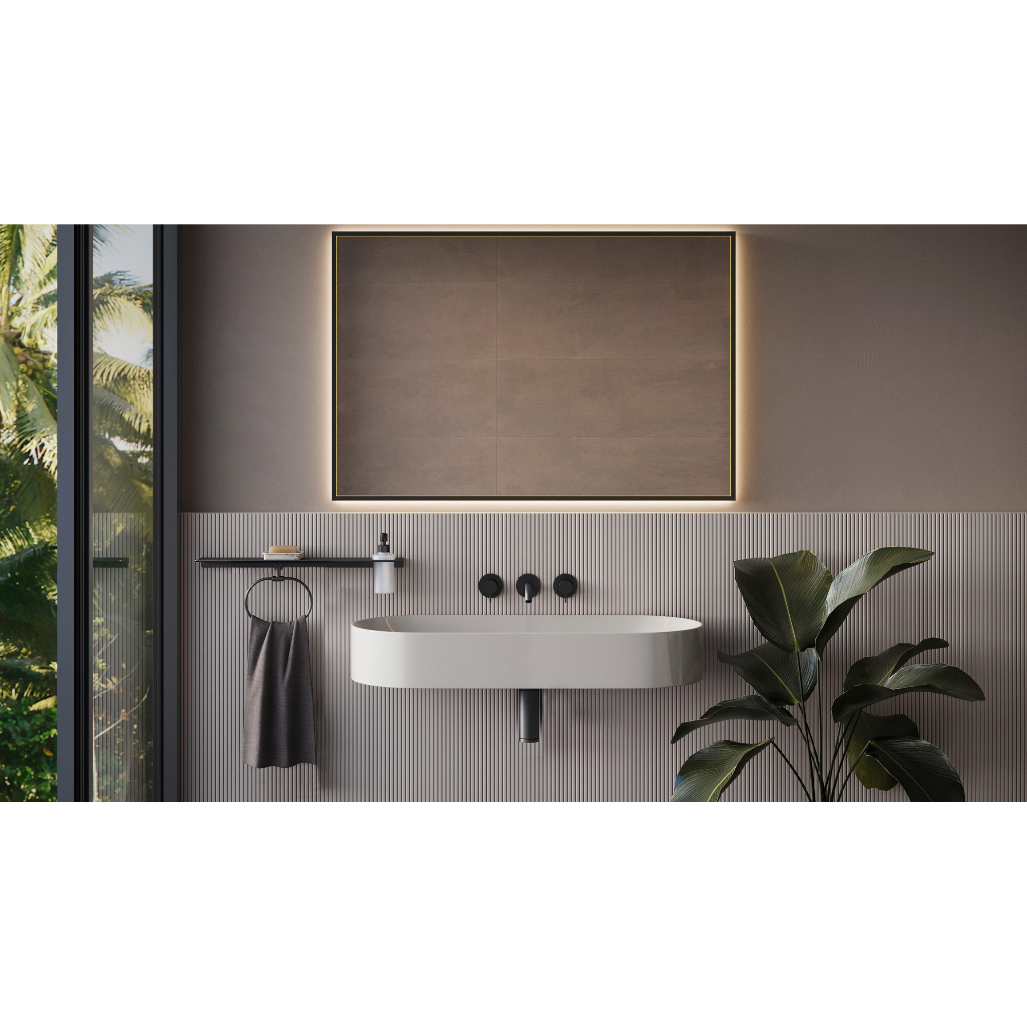 Imaginez : un miroir qui non seulement éclaire votre salle de bains, mais crée également une ambiance chaleureuse tout en offrant des avantages pratiques. Ce miroir élève votre routine quotidienne à un niveau supérieur grâce à son éclairage LED direct et indirect que vous pouvez facilement adapter à votre humeur. Grâce au chauffage de miroir intégré, vous n'avez plus jamais à lutter contre un miroir embué après une douche chaude. L’éclairage couleur dimmable avec télécommande permet de régler précisément l’ambiance comme vous le souhaitez, d’une lumière fonctionnelle et claire à une lueur douce et apaisante. La finition en laiton brossé PVD donne au miroir une apparence chaude et luxueuse qui s’intègre parfaitement dans les salles de bains modernes et élégantes. Vous transformez ainsi votre salle de bains en un lieu où confort et design vont de pair.
