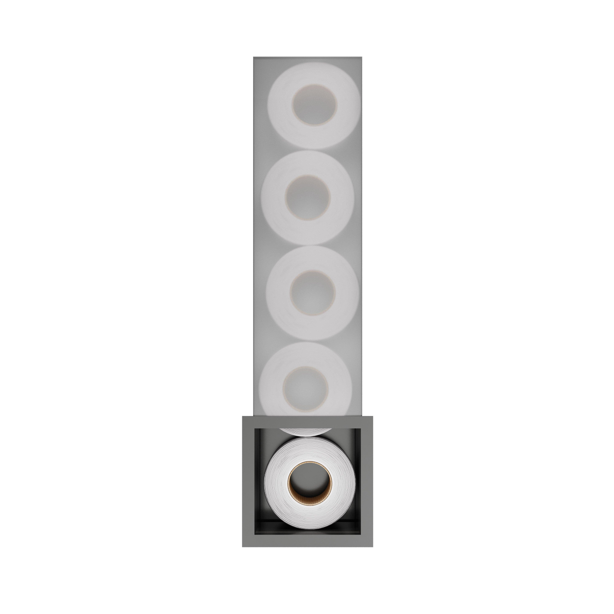 Avec de la place pour six rouleaux de papier toilette supplémentaires, vous avez toujours suffisamment de réserve à portée de main, ce qui apporte un confort supplémentaire au quotidien. Le montage encastré assure une finition épurée et peu encombrante, idéale pour les petites salles de bains ou toilettes où l’ordre et la clarté sont essentiels. Le design astucieux rend le changement des rouleaux simple et rapide, afin que vous soyez toujours prêt sans le moindre tracas. Cette combinaison de fonctionnalité et de style rend la vie un peu plus simple et agréable.