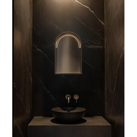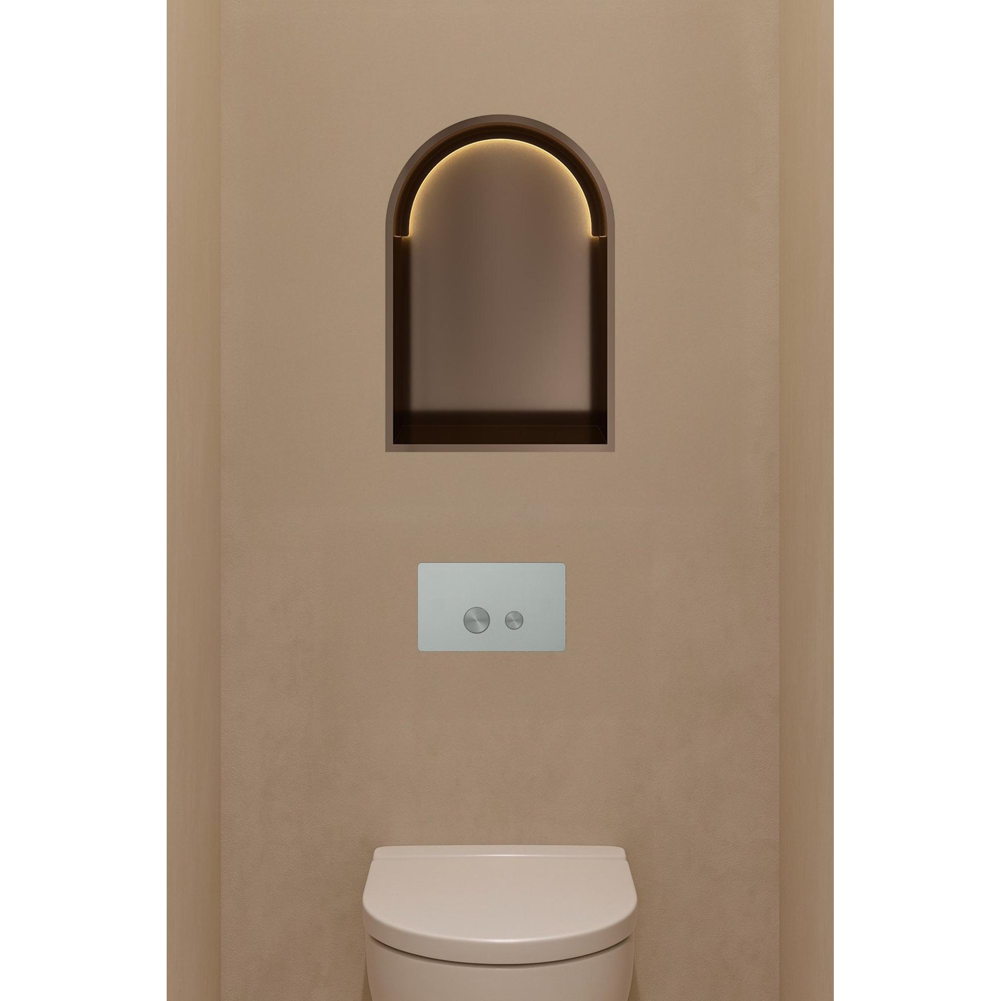 La forme élégante en arc de cette niche encastrée assure une apparence intemporelle et raffinée. Le bronze toscan chaud en fait un véritable point focal sans dominer. Grâce au design subtil, vous ajoutez un élément ludique mais calme à votre mur de salle de bains. Cela facilite la combinaison de la niche avec différents styles d'intérieur, du moderne au classique. L'éclairage LED intégré accentue la forme et crée une ambiance chaleureuse le soir, faisant de votre salle de bains un lieu accueillant pour se détendre.