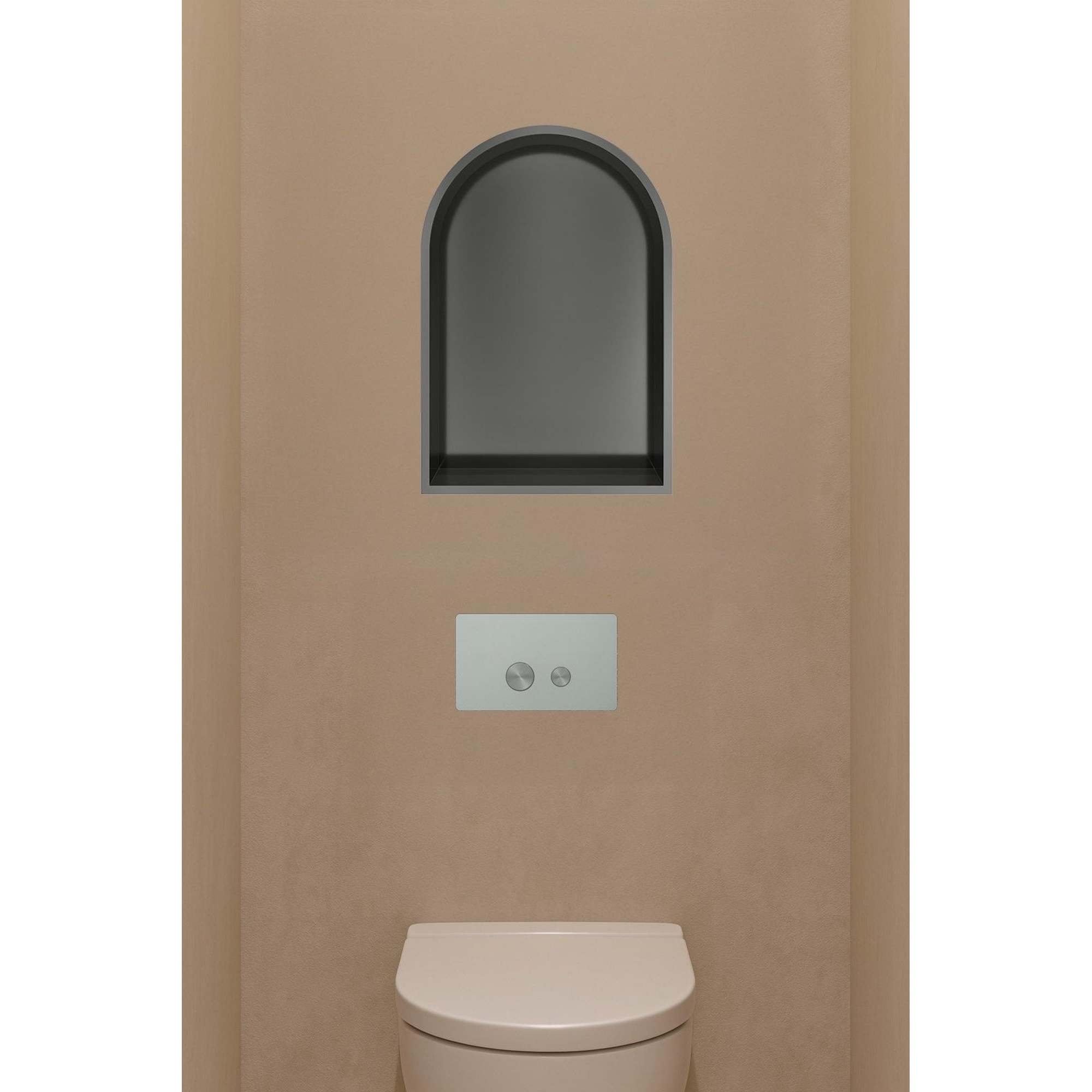 La finition gunmetal brossé PVD donne à cette niche encastrée un look unique et contemporain qui attire immédiatement l'attention. Le métal sombre offre une apparence subtile mais puissante qui convient parfaitement aux salles de bains modernes. Grâce au design épuré et aux matériaux de haute qualité, vous ajoutez un élément qui n'est pas seulement fonctionnel, mais aussi un véritable point focal. Ainsi, vous créez une salle de bains où style et ambiance vont de pair, sans être trop envahissants.