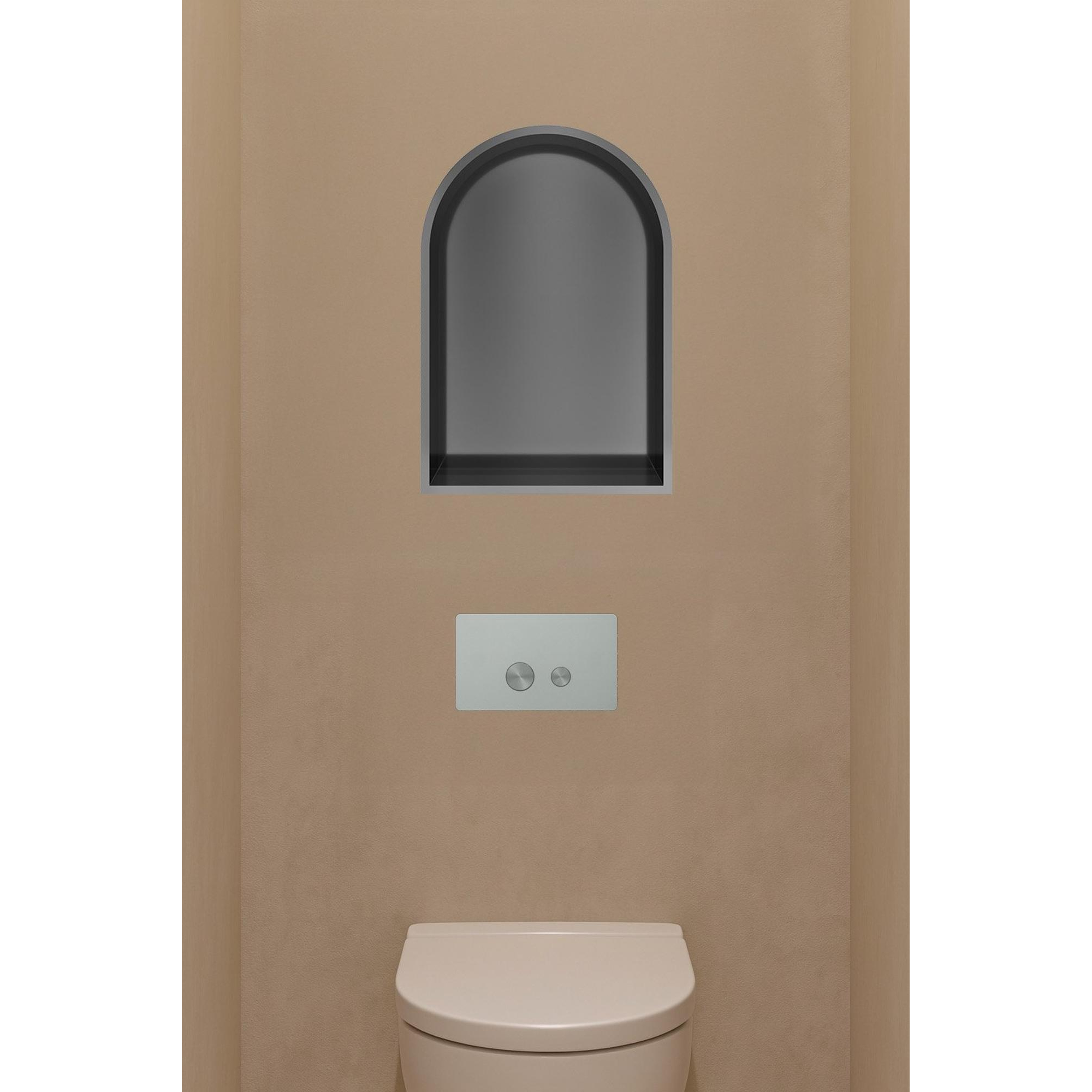 Le modèle en arc particulier donne à cette niche encastrée une apparence caractéristique qui attire immédiatement l'attention. La couche PVD noire brossée offre une finition mate et raffinée qui se combine facilement avec différents styles de salle de bains. Que vous optiez pour un aménagement minimaliste, industriel ou classique, cette niche ajoute un élément de design subtil mais puissant. Ainsi, vous donnez à votre salle de bains ce petit plus sans en faire trop.