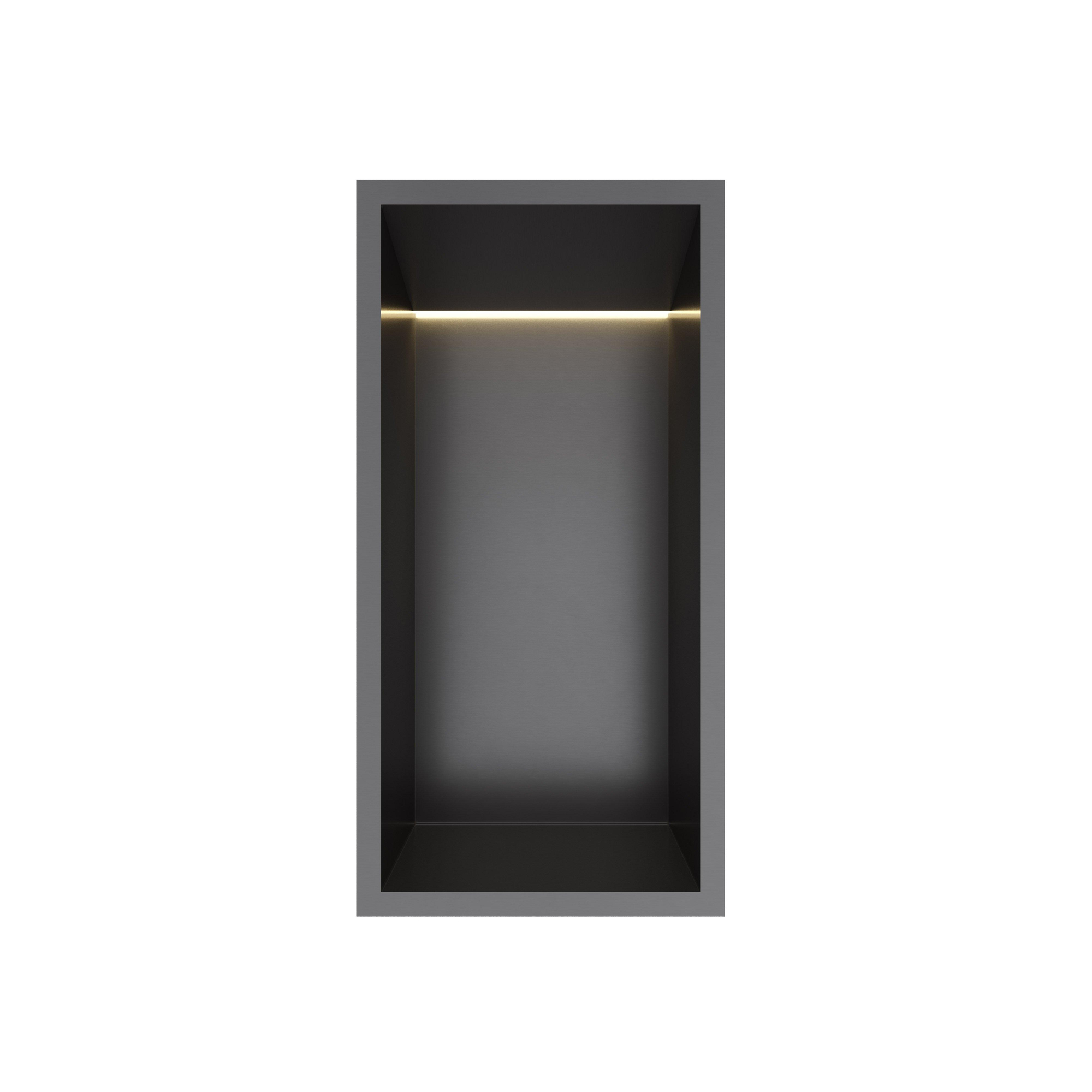 Hotbath &MORE Boîte encastrée ou niche encastrée 30x15x10cm avec LED IP44 PVD noir brossé
