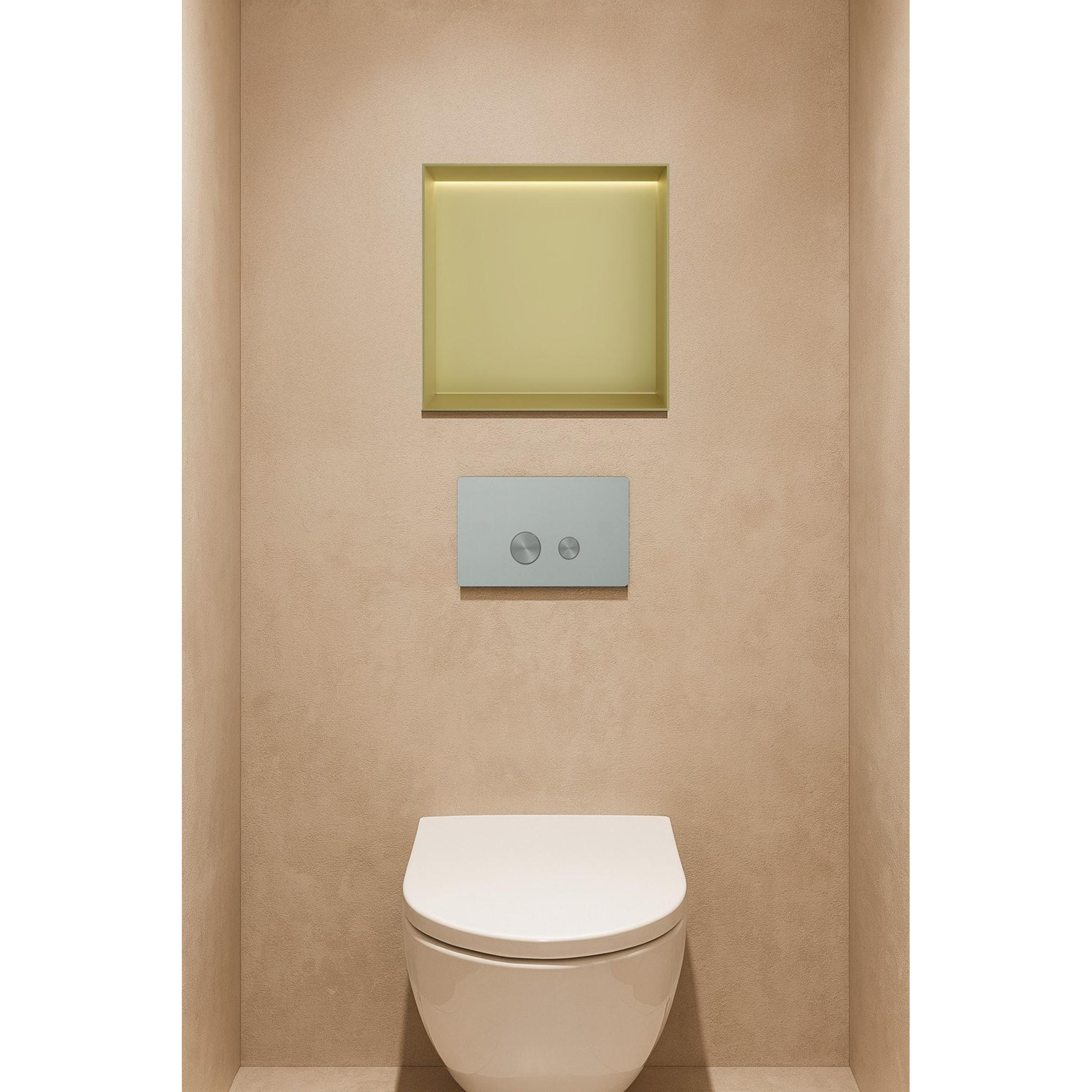 La version sans cadre de cette niche encastrée offre un aspect minimaliste et élégant qui convient parfaitement aux salles de bains modernes. Le laiton brossé donne une brillance chaude et naturelle qui se remarque subtilement sans dominer. L’absence de cadre crée une transition sans couture avec le mur, ce qui procure une atmosphère calme et luxueuse. Cette combinaison de design et de choix de matériaux en fait un véritable point fort qui donne à votre salle de bains une apparence exclusive. De plus, l’éclairage LED intégré crée un accent d’ambiance, diffusant une lueur chaleureuse même le soir.