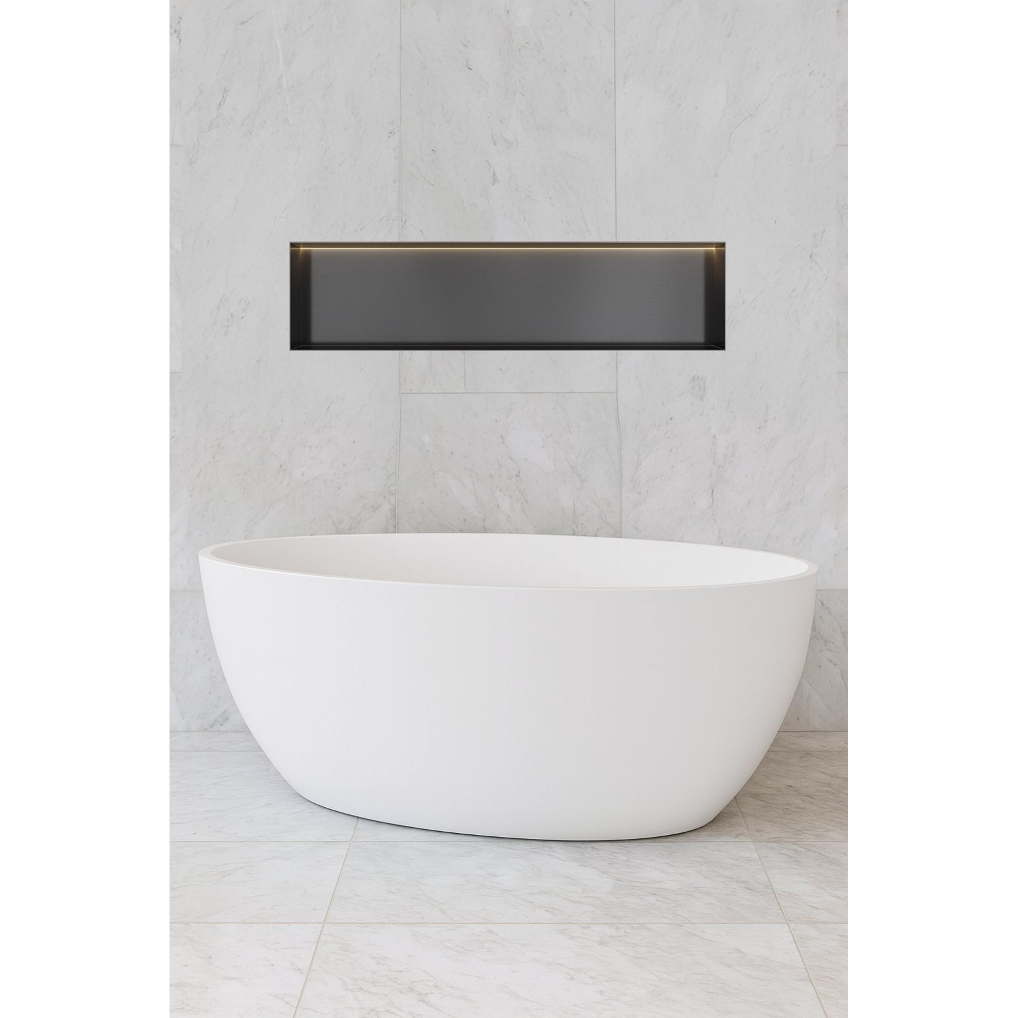 La conception sans cadre et la finition PVD noire brossée confèrent à cette niche encastrée une apparence moderne et raffinée. Ce design minimaliste s’intègre sans effort dans divers styles de salle de bains, du look épuré et industriel au style chaleureux et contemporain. Grâce à l’absence de cadre, une transition fluide avec le mur est créée, ce qui procure un effet calme et spacieux. Le discret éclairage LED met l’ensemble en valeur et crée une ambiance chaleureuse, rendant votre salle de bains non seulement fonctionnelle mais aussi particulièrement accueillante.