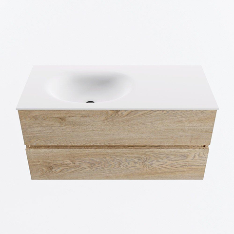 MONDIAZ VICA meuble sous lavabo 100cm Chêne blanchi 2 tiroirs. Lavabo MOON gauche 1 trou de robinet, couleur Talc.
