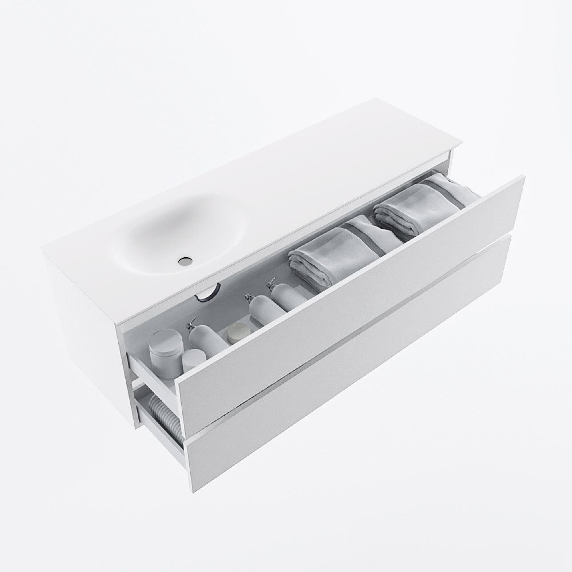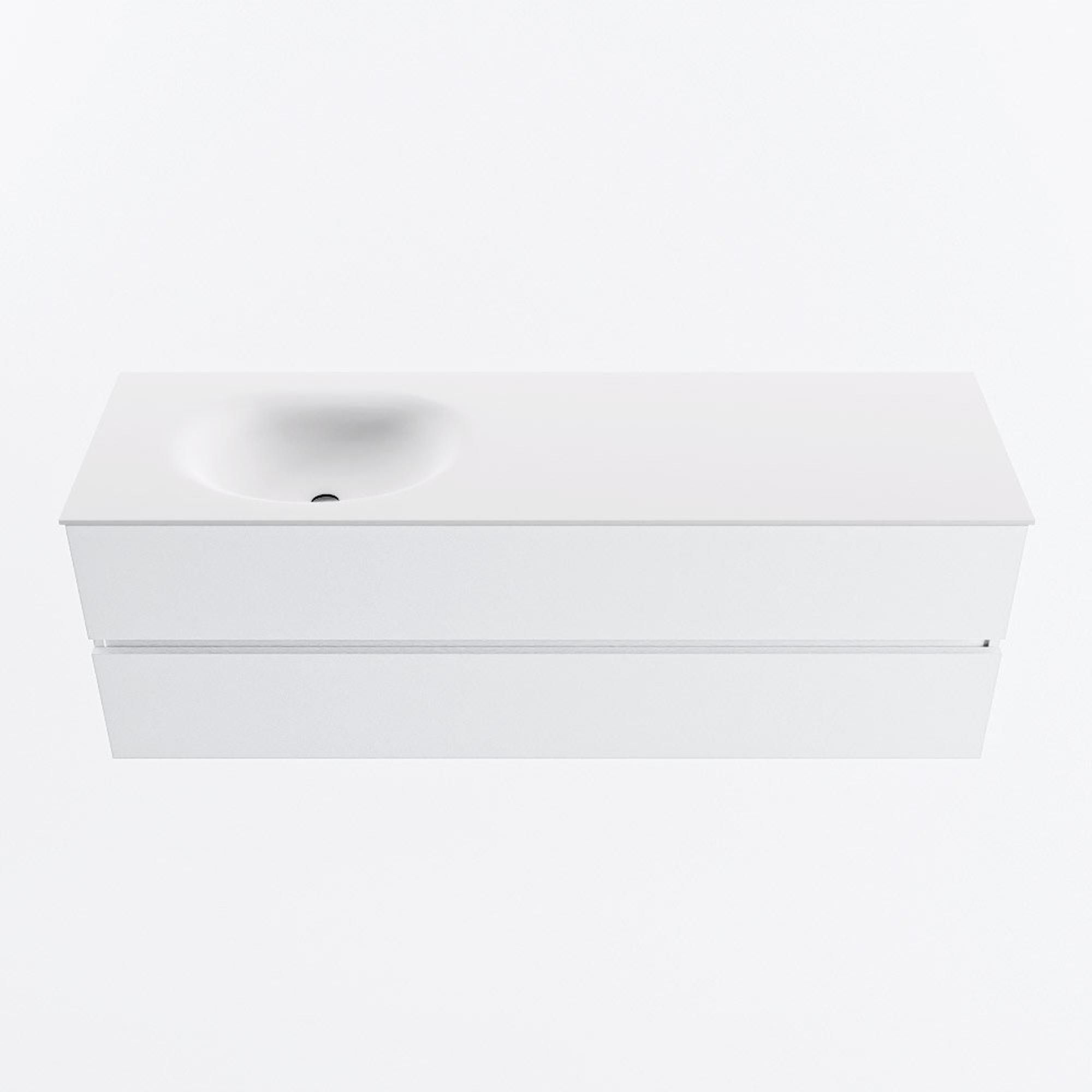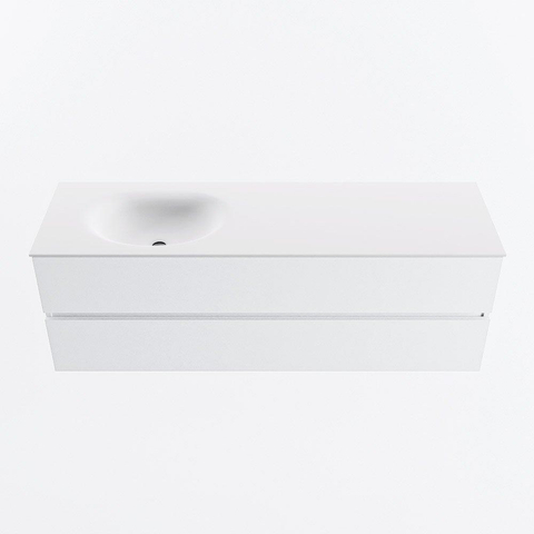 MONDIAZ VICA meuble sous lavabo 150cm Talc 2 tiroirs. Lavabo MOON gauche 1 trou de robinet, couleur Talc.