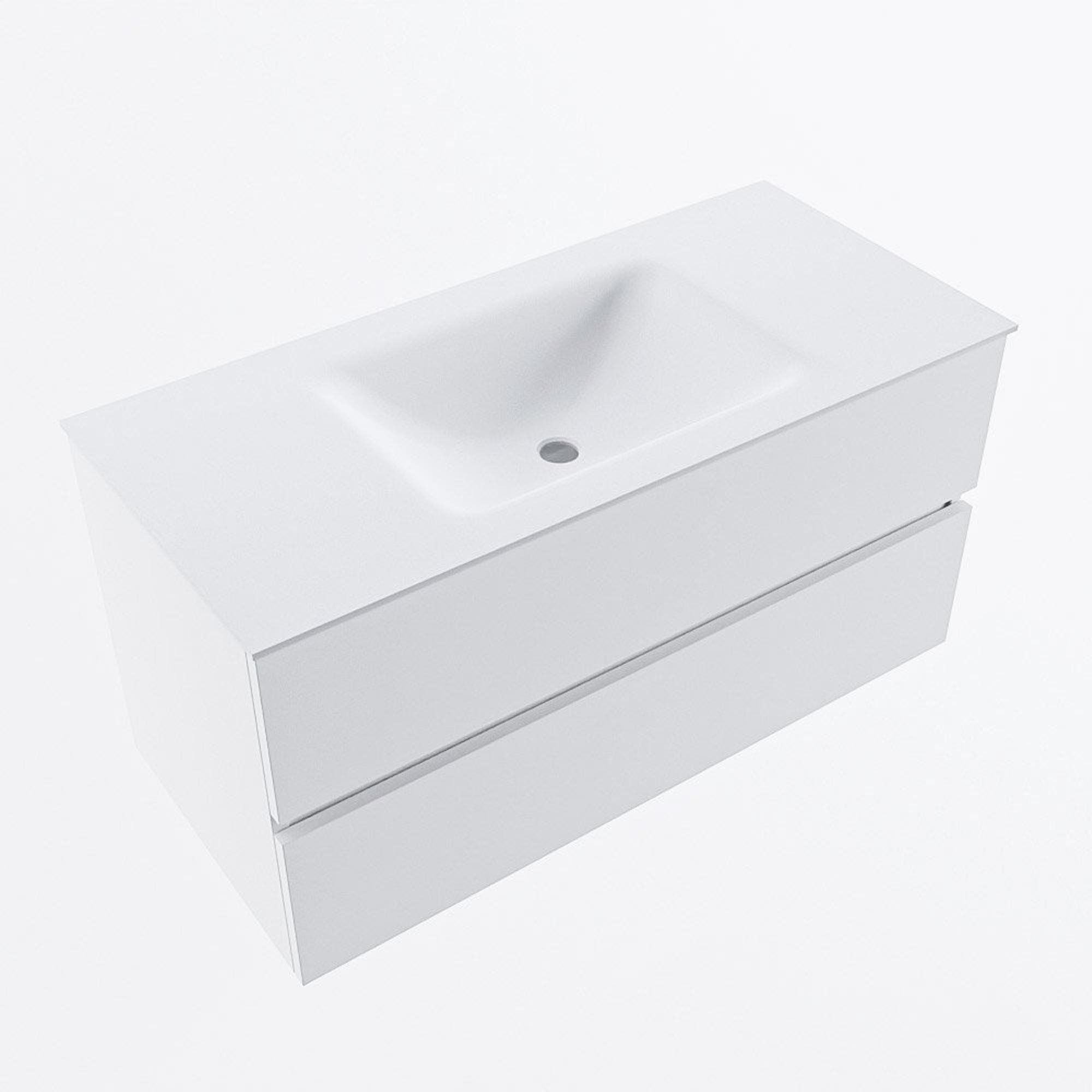 MONDIAZ VICA meuble sous lavabo 100cm Talc 2 tiroirs. Lavabo CLOUD centre 1 trou de robinet, couleur Talc.