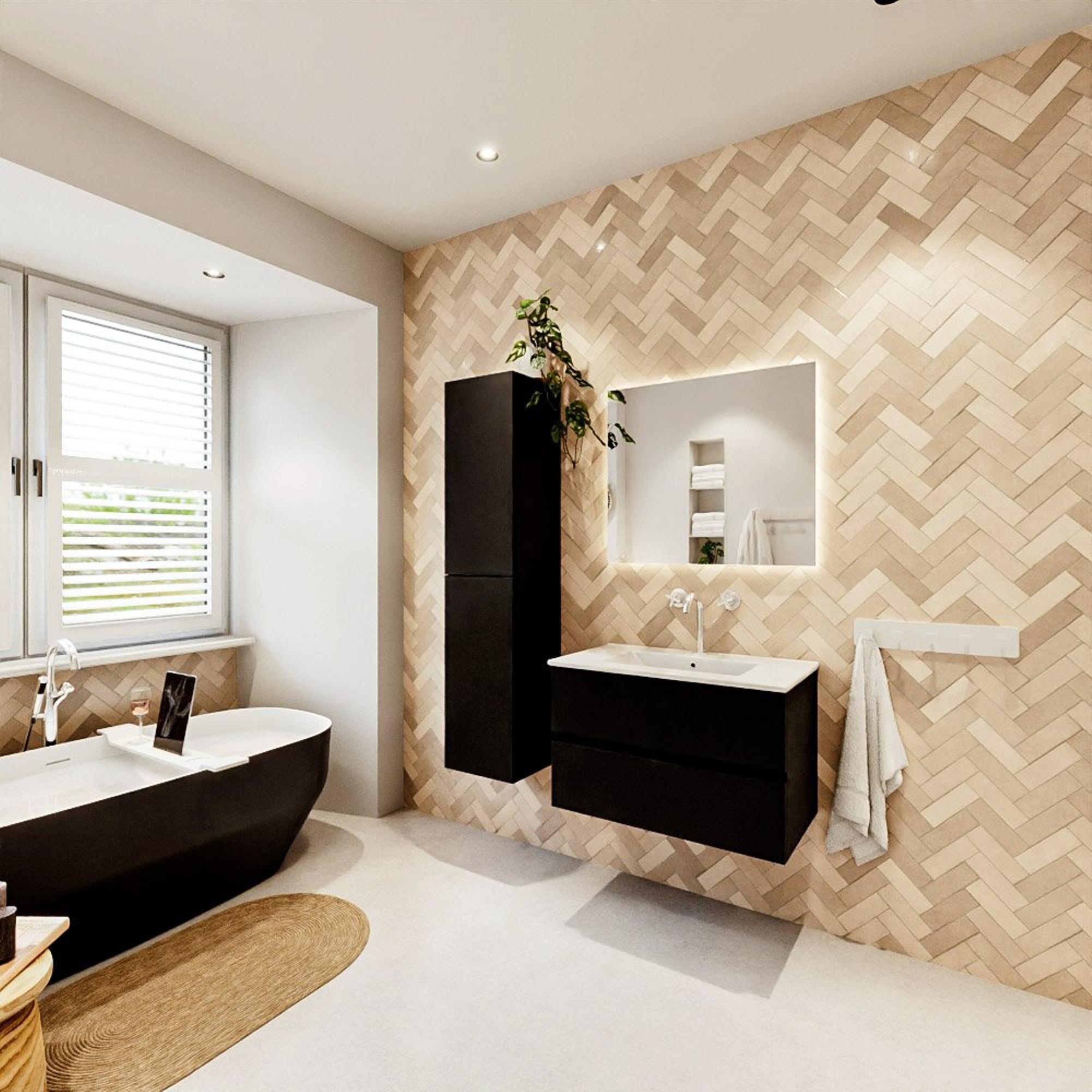 Le meuble sous lavabo MONDIAZ VICA et le lavabo DENIA sont conçus avec une apparence épurée et moderne. Les lignes droites et le design minimaliste s'intègrent parfaitement dans un style de salle de bain contemporain, créant une atmosphère raffinée et tendance.