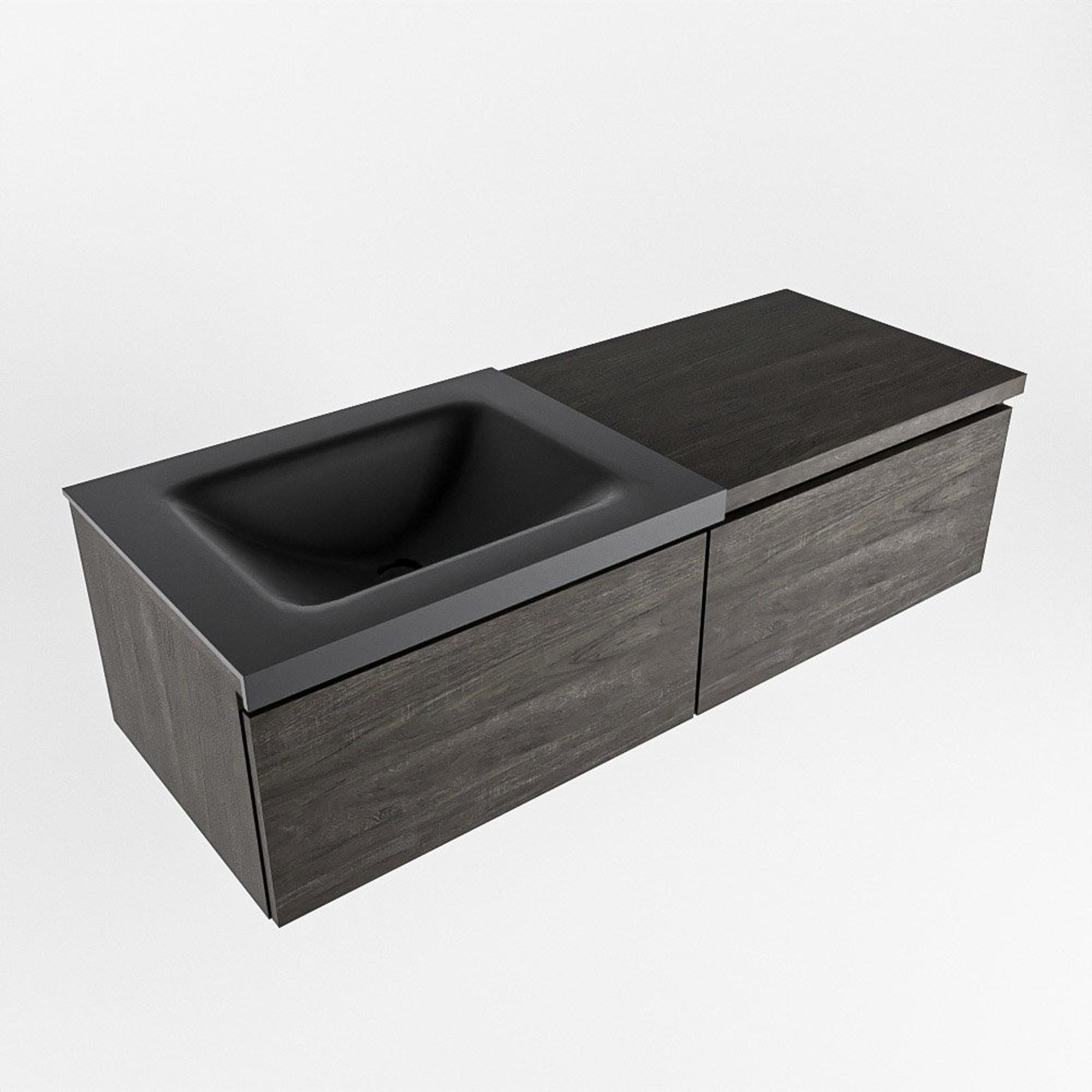 MONDIAZ BUKLA 120cm ensemble de meuble avec module 60 couleur Marron Foncé avec 2 tiroirs. Lavabo CLOUD à gauche 0 trou de robinet couleur Urban.