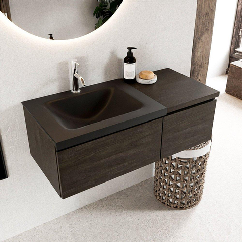 MONDIAZ BUKLA 100cm meuble de salle de bain avec module 40 couleur Marron Foncé avec 2 tiroirs. Lavabo CLOUD gauche 1 trou de robinet couleur Urban.