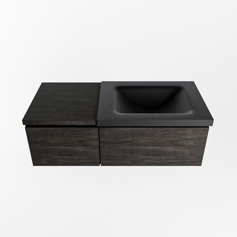 MONDIAZ BUKLA meuble de salle de bain 100cm avec module 40 couleur Marron Foncé avec 2 tiroirs. Lavabo CLOUD à droite 1 trou de robinet couleur Urban.