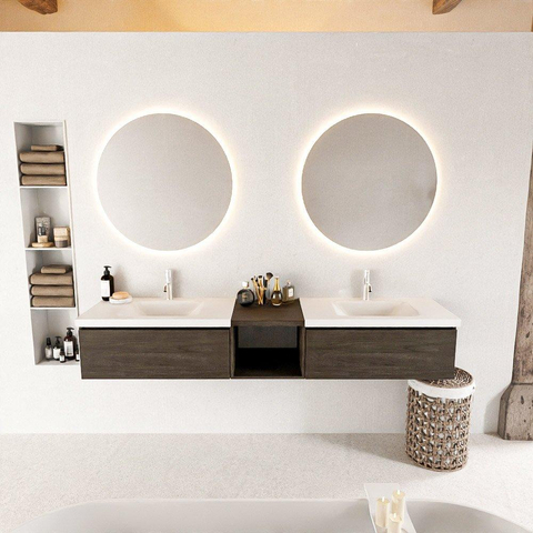 Ce meuble de salle de bain dégage du luxe dans chaque fibre. La couleur Marron Foncé donne une apparence chaleureuse et accueillante, tandis que le double lavabo assure un confort et une commodité supplémentaires. Les matériaux et la finition de haute qualité garantissent un meuble durable et élégant qui durera des années.