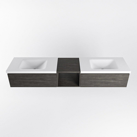 MONDIAZ BUKLA 200cm ensemble de meuble avec module ouvert 40 couleur Marron foncé avec 2 tiroirs. Lavabo CLOUD double 2 trous de robinet couleur Talc.