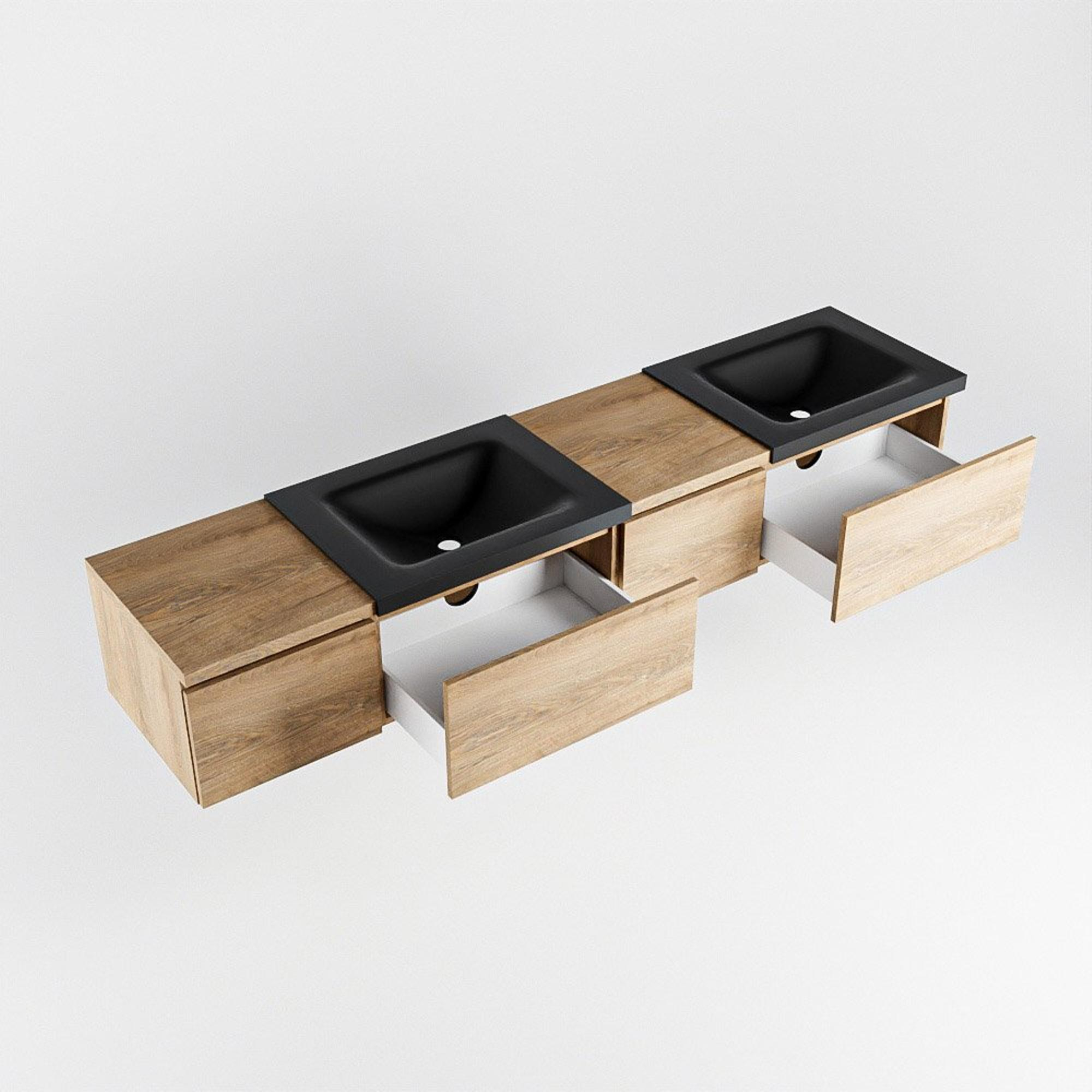 MONDIAZ BUKLA 200cm ensemble de meuble avec module 40 à droite couleur Chêne blanchi avec 4 tiroirs. Lavabo CLOUD double 2 trous de robinet couleur Urbaine.