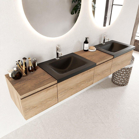 Non seulement ce meuble de salle de bain est un régal pour les yeux, mais il est également extrêmement pratique à utiliser. Les 4 tiroirs offrent suffisamment d'espace de rangement pour tous vos articles de salle de bain, tandis que le double lavabo assure un confort supplémentaire lors des matins chargés. Avec ce meuble de salle de bain, vous alliez fonctionnalité et style, transformant votre salle de bain en un lieu où vous aimez passer du temps.