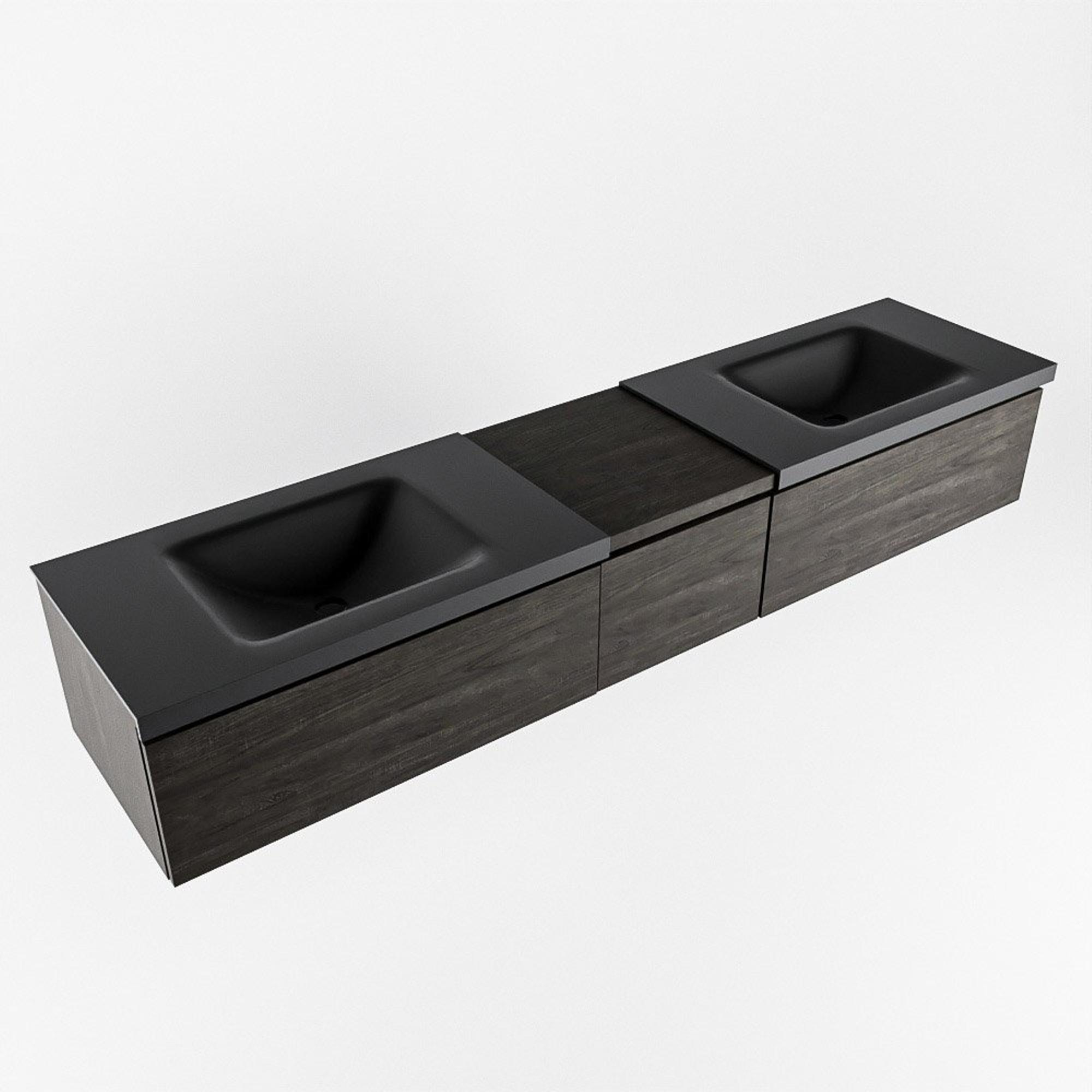 MONDIAZ BUKLA 200cm meuble de salle de bain avec module 40 couleur Marron Foncé avec 3 tiroirs. Lavabo CLOUD double 2 trous de robinet couleur Urban.