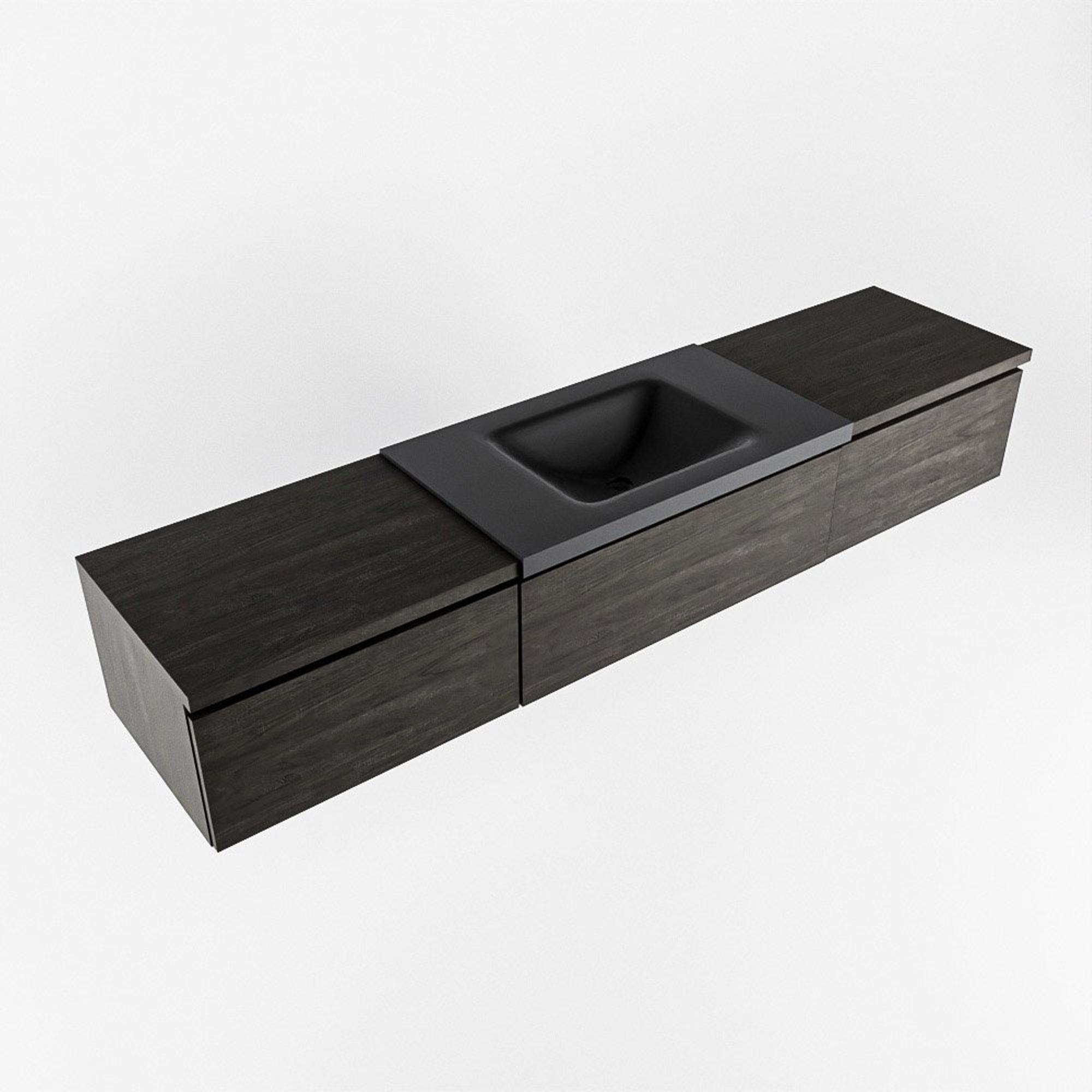 MONDIAZ BUKLA 200cm ensemble de meuble avec module 60 couleur Marron Foncé avec 3 tiroirs. Lavabo CLOUD milieu 0 trous de robinet couleur Urban.