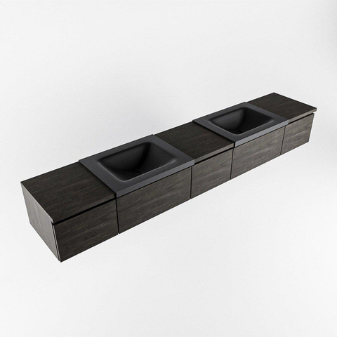 MONDIAZ BUKLA 240cm ensemble de meuble avec module 40 couleur Marron Foncé avec 5 tiroirs. Lavabo CLOUD double 0 trou de robinet couleur Urban.