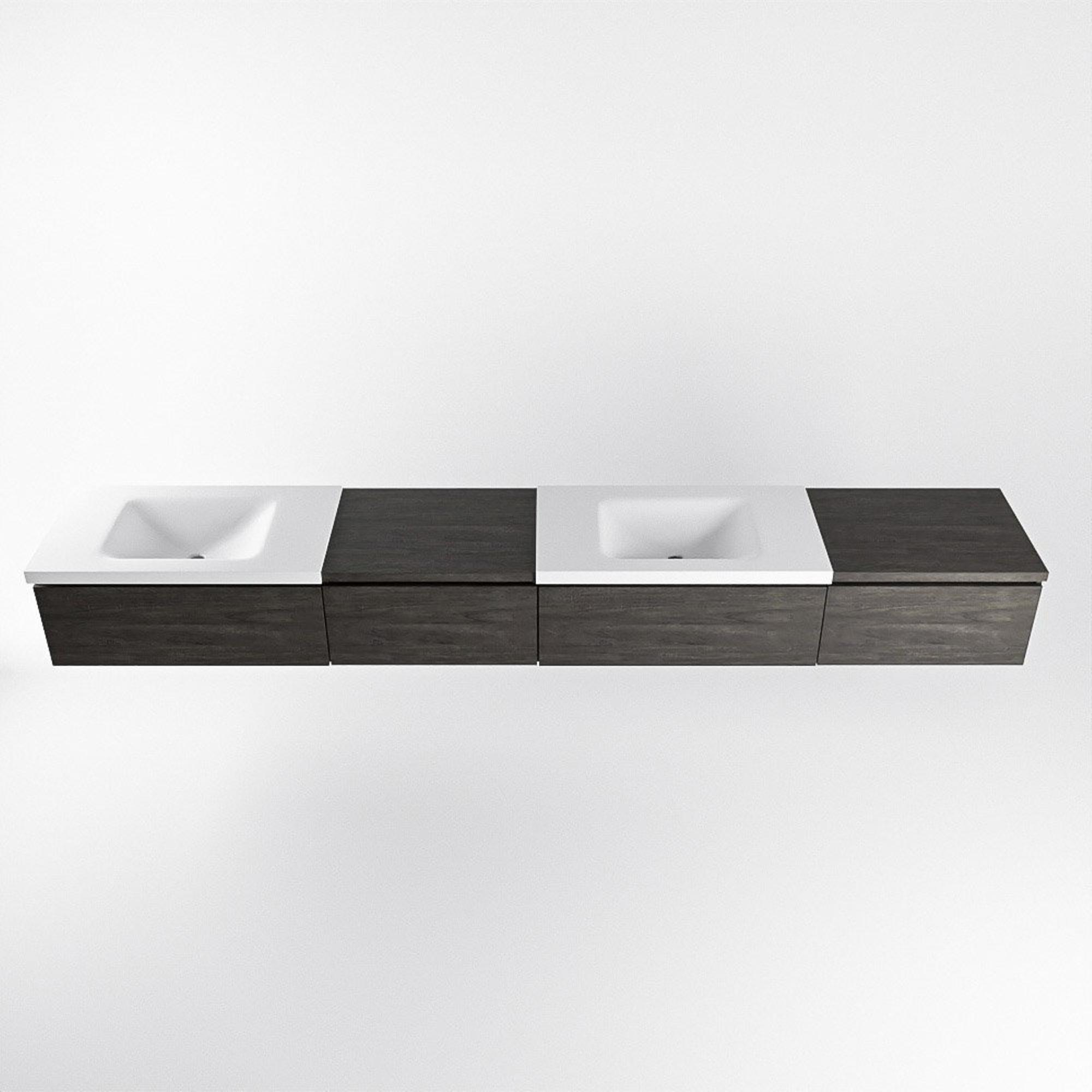 MONDIAZ BUKLA 280cm ensemble de meuble avec module 60 gauche couleur Marron Foncé avec 4 tiroirs. Lavabo CLOUD double 0 trou de robinet couleur Talc.