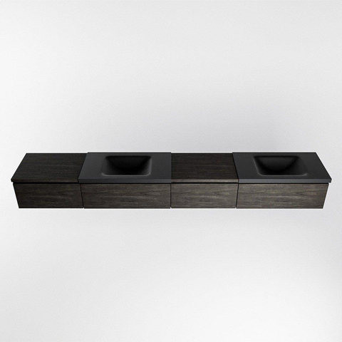 MONDIAZ BUKLA 280cm ensemble de meuble avec module 60 à droite couleur Marron Foncé avec 4 tiroirs. Lavabo CLOUD double 2 trous de robinet couleur Urban.
