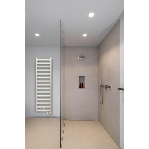 La combinaison d’une hauteur d’environ 178,9 cm et d’une largeur de 60 cm confère à ce radiateur un aspect élégant et mince, idéal à côté d’une douche, d’une baignoire ou d’un meuble de salle de bains. La couleur blanc brillant offre un look frais et propre qui s’accorde parfaitement avec la céramique blanche, mais se marie aussi très bien avec les tons bois, l’effet béton ou les carreaux foncés. Grâce à son design plat et épuré, le radiateur paraît calme et moderne, sans détails superflus. Il devient ainsi un élément élégant de la conception de votre salle de bains plutôt qu’un mal nécessaire que vous essayez de cacher.