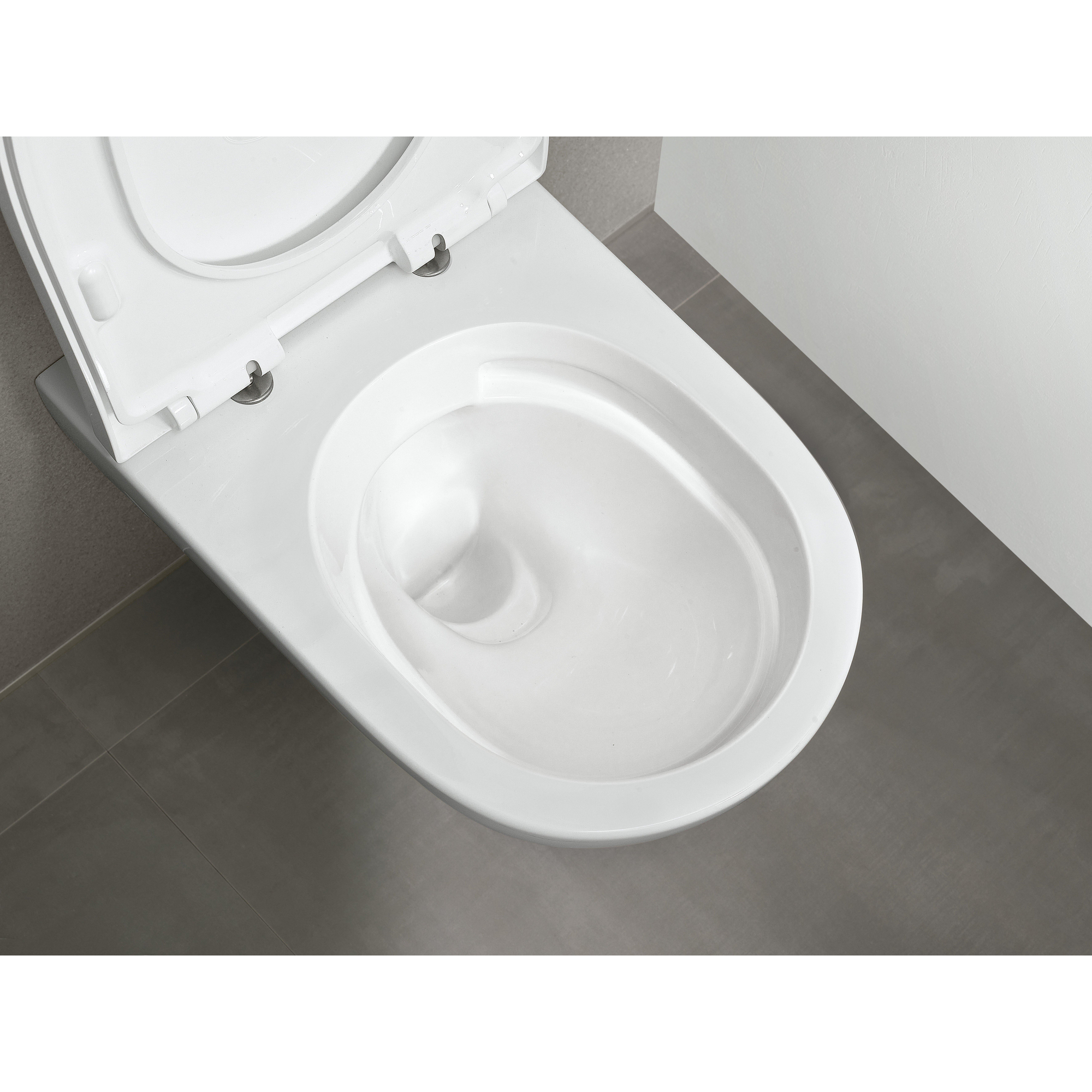 Vous recherchez un WC suspendu aux lignes épurées qui gère intelligemment l’eau, est particulièrement hygiénique et s’adapte à presque tous les styles de salle de bains ? Alors ce modèle compact avec une profondeur de 52 cm est un choix particulièrement judicieux. Il est suspendu et ne touche pas le sol, ce qui donne à votre salle de bains une impression d’espace et rend le nettoyage beaucoup plus facile. Grâce à sa forme arrondie et à sa couleur blanche intemporelle, il trouve aussi bien sa place dans une salle de bains familiale moderne que dans un WC minimaliste ou une salle de bains luxueuse de style hôtel. La combinaison d’une technique de rinçage innovante, d’une surface antibactérienne et du traitement antisalissure CeramicPlus rend ce WC suspendu idéal si vous accordez beaucoup d’importance à l’hygiène, au confort et à la facilité d’entretien. Vous ne choisissez donc pas seulement un beau design, mais surtout un confort d’utilisation au quotidien dont vous profiterez pendant de nombreuses années.