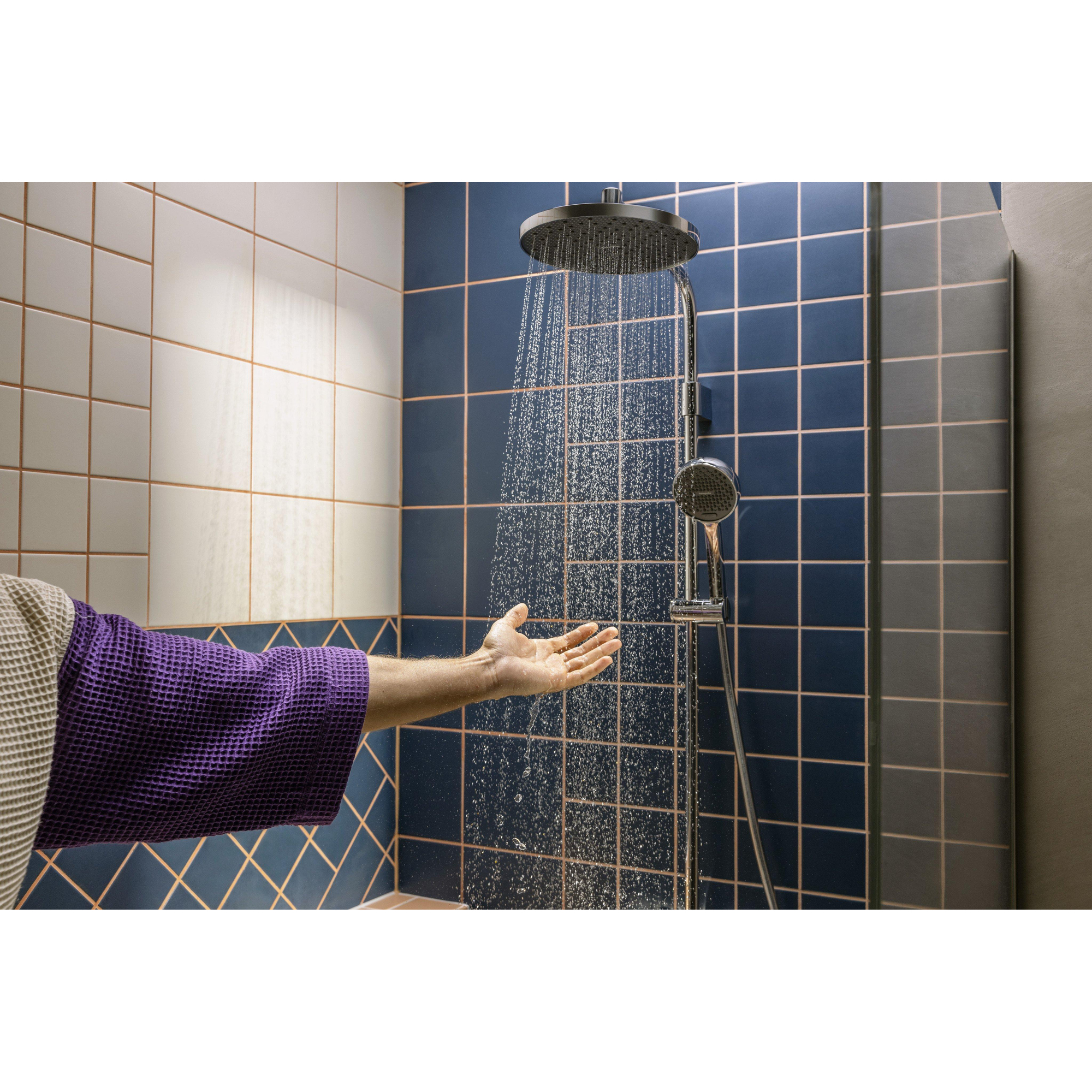 Avec sa finition chromée brillante et son design intemporel, ce système de douche est un véritable point fort dans toute salle de bains. Les lignes épurées et le caractère minimaliste s'adaptent facilement à différents styles d'intérieur, du moderne au classique. La douche de tête d'un diamètre de 240 mm offre un jet d'eau large et uniforme qui invite à la détente. De plus, le bras de douche de 344 mm de long vous offre une liberté de mouvement supplémentaire pendant la douche. Cet ensemble élégant élève l'apparence de votre salle de bains à un niveau supérieur et en fait un endroit où vous aimez passer du temps.