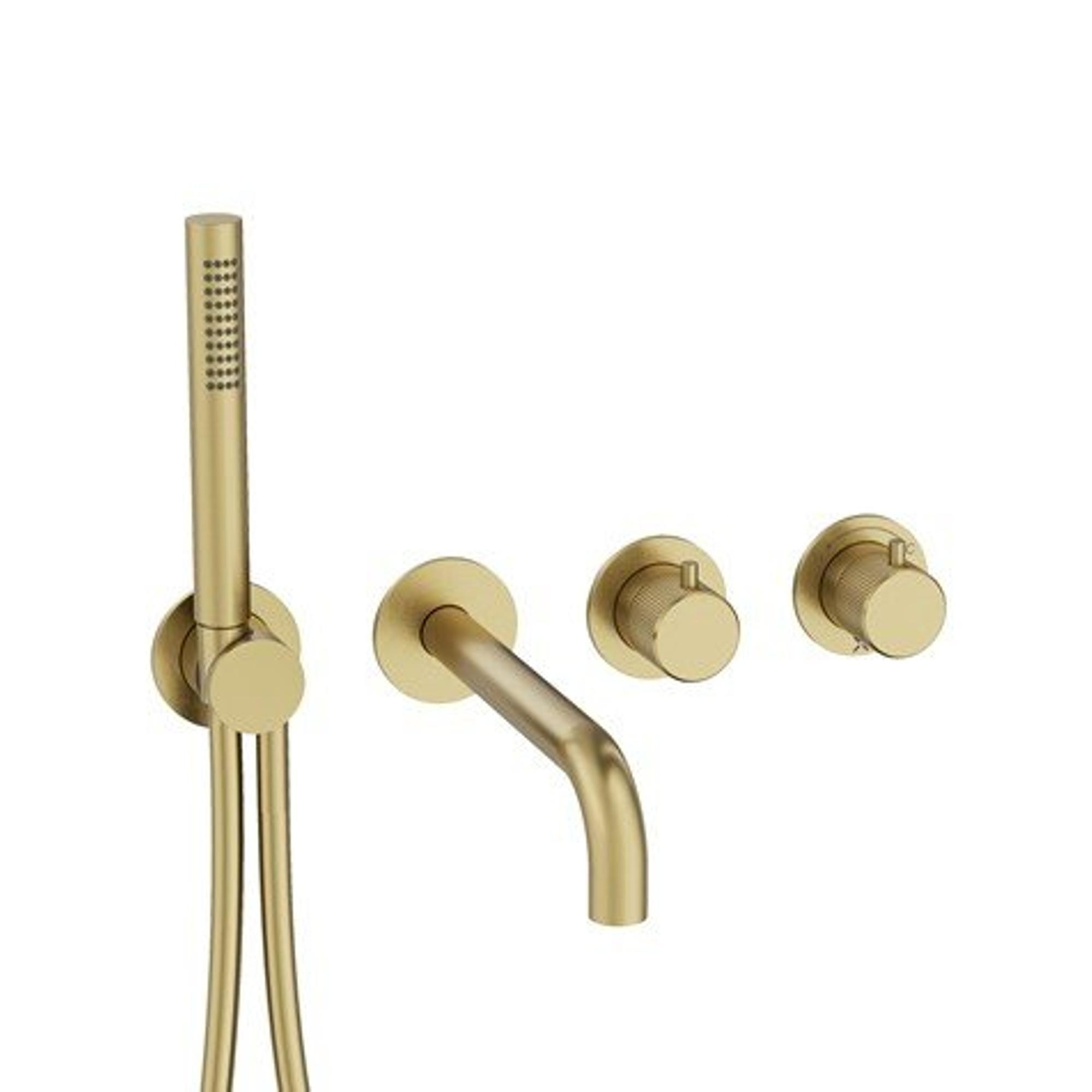 Crosswater Module 3ONE6 Robinet de baignoire - incl. douchette à main - robinet encastré - 2 garnitures de commande - effet laiton brossé inoxydable