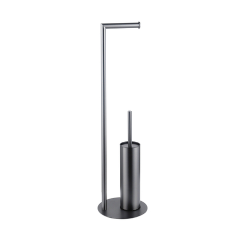 Fortifura Calvi porte-rouleau de toilette sur pied avec brosse de toilette - avec crochet pour serviette - Gunmetal PVD brossé