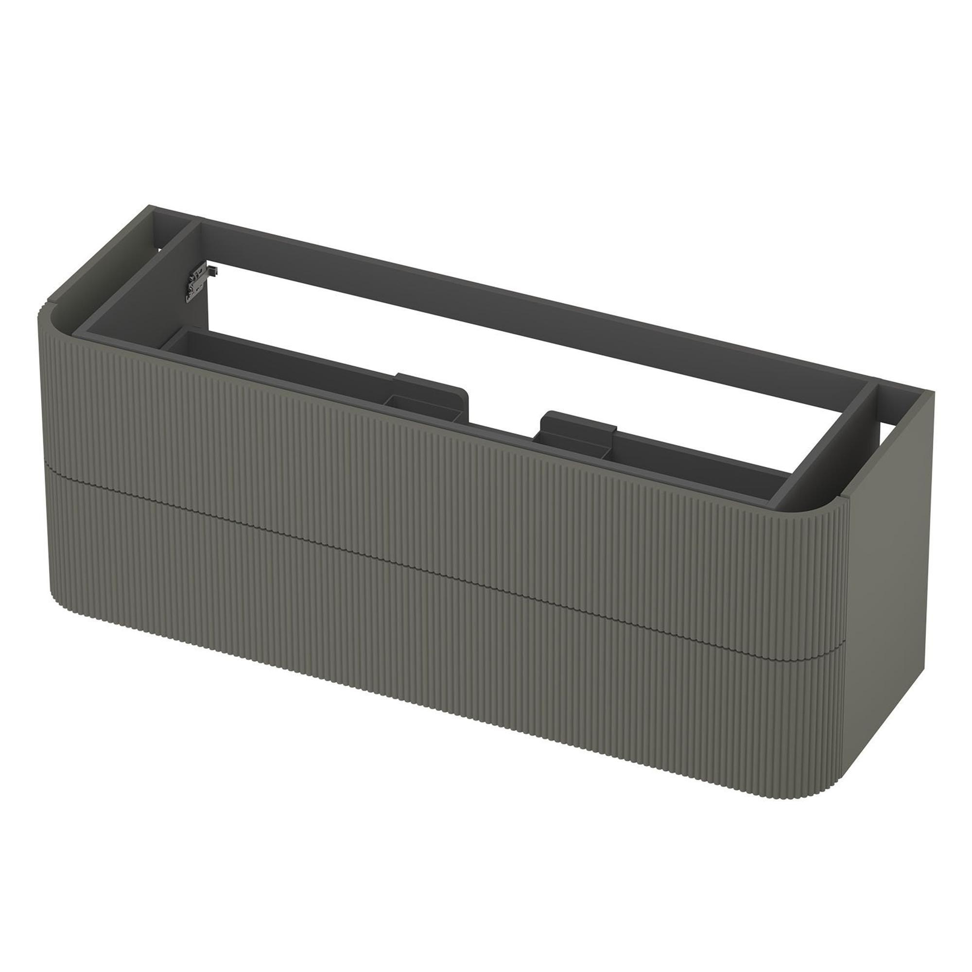 INK Concept R Meuble sous-vasque - 140x45x52cm - 2 tiroirs - poignées superposées - fraisé - angles arrondis - MDF laqué - vert béton mat
