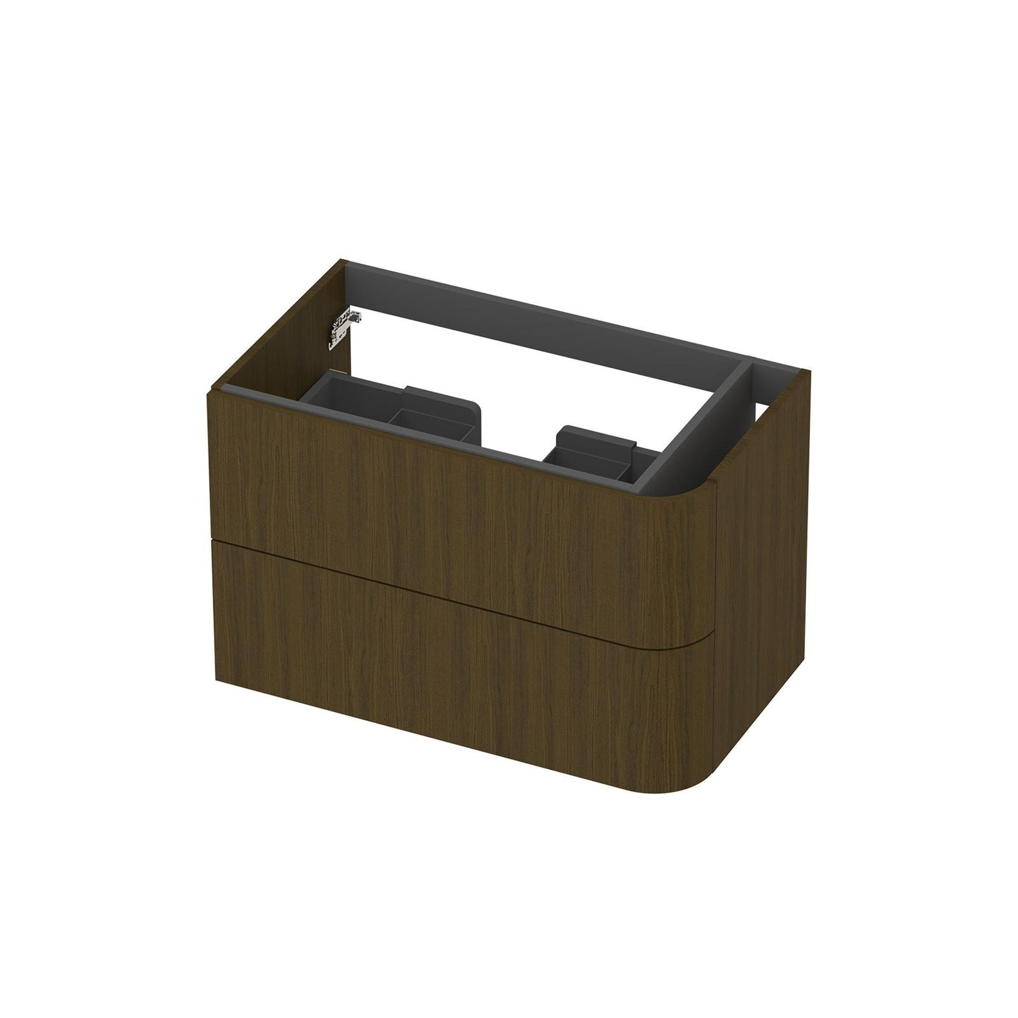 INK Concept R Meuble sous-lavabo - 80x45x52cm - 2 tiroirs - poignées rapportées - angle arrondi à droite - MDF - shadow veneer