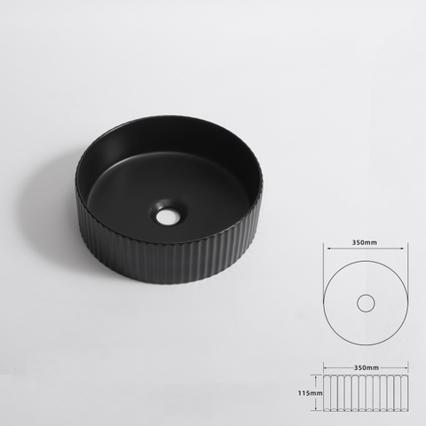- Vasque ronde à poser avec extérieur rainuré pour un aspect luxueux et élégant.