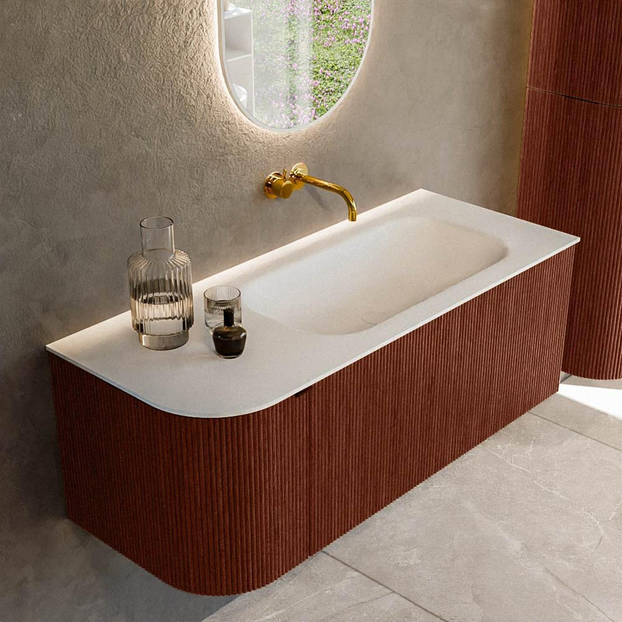 Mondiaz KURVE Ensemble de meuble salle de bain - 115x46x40cm - 1 tiroir - 1 porte - lavabo en solid surface - droite - sans trou de robinet - Ruby