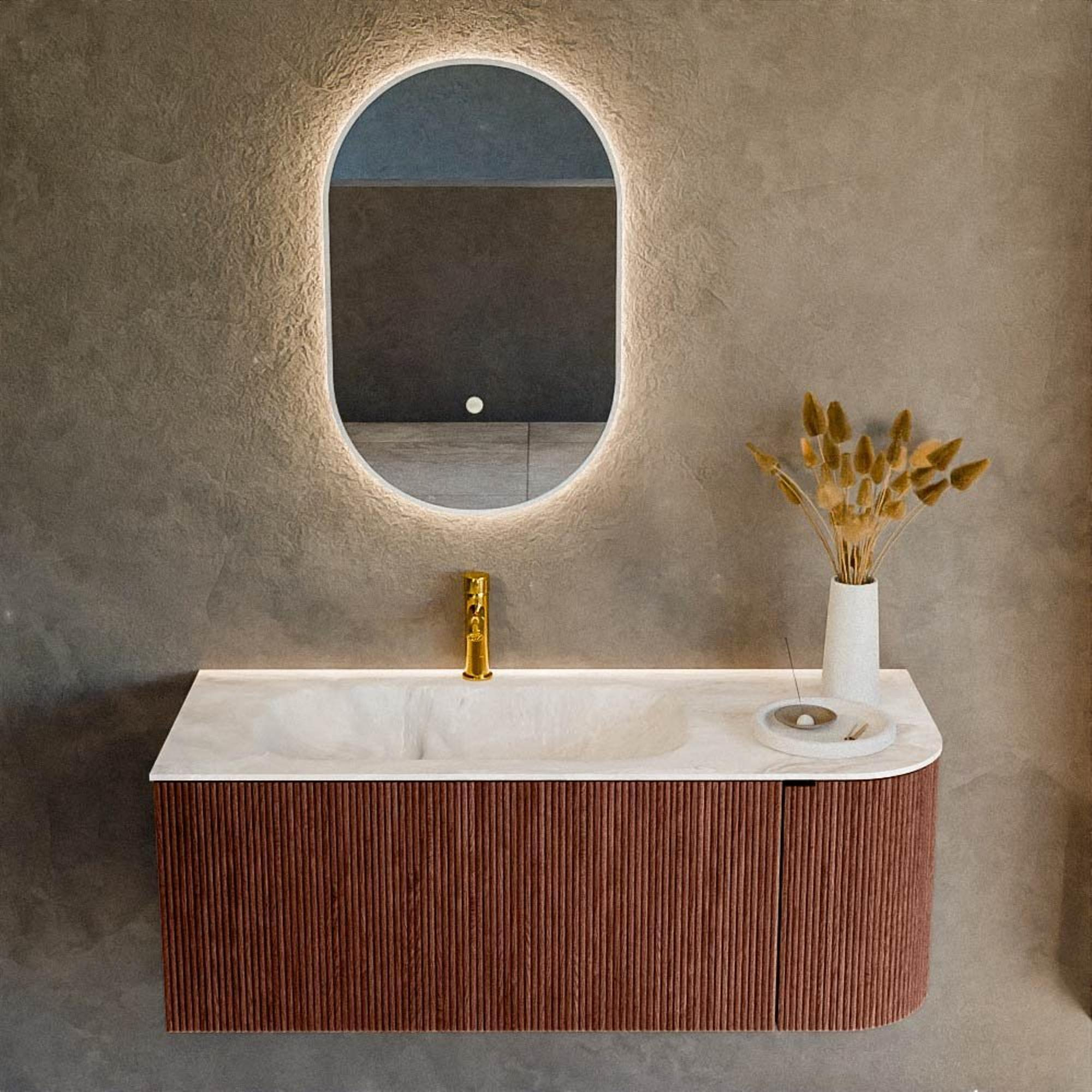 Mondiaz KURVE-DLUX Ensemble de meuble - 115x46x40cm - 1 tiroir - 1 porte - lavabo en solid surface - gauche - 1 trou de robinet - Ruby