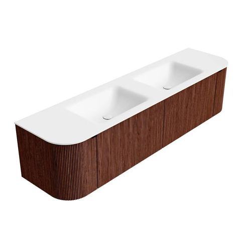 Ensemble de meuble de salle de bain Mondiaz KURVE - 180x46x40cm - 2 tiroirs - 2 portes - lavabo en solid surface - double - sans trou de robinet - Ruby