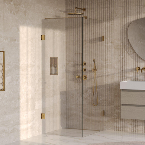 Cette cabine de douche est un exemple d’élégance intemporelle. Le verre clair avec un revêtement PVD or brossé donne à votre salle de bains une apparence exclusive que vous n’oublierez pas rapidement. Les tons chauds dorés ajoutent une touche de luxe sans dominer, ce qui la rend parfaite pour divers styles d’intérieur. Que vous choisissiez un aménagement moderne et minimaliste ou une ambiance classique, cette cabine élève votre salle de bains à un niveau supérieur. De plus, le design épuré avec porte battante crée une sensation d’ouverture et d’espace, rendant votre salle de bains plus grande et plus lumineuse. Ainsi, vous profitez non seulement de la fonctionnalité, mais aussi d’une valeur esthétique qui vous inspire chaque jour.