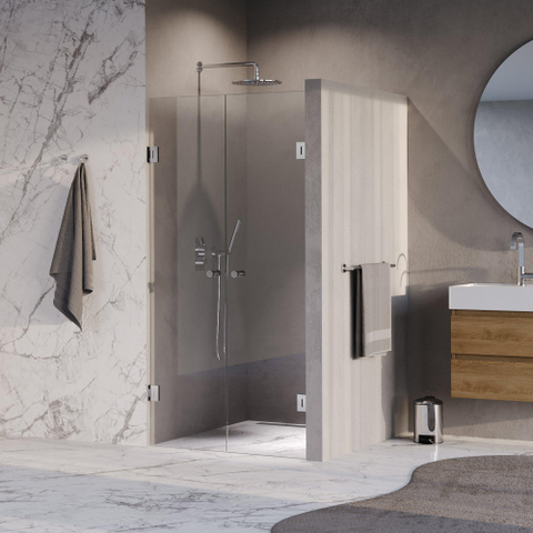 Avec des dimensions de 100x200 cm et une conception réversible, cette porte battante convient parfaitement à diverses configurations de salle de bains. Les deux portes battantes s'ouvrent en douceur et offrent un accès spacieux à votre douche. Grâce au revêtement du verre, celui-ci reste clair et facile à nettoyer, contribuant à un environnement de douche hygiénique et frais. Le montage est simple et flexible, vous permettant de profiter rapidement de votre nouvelle porte de douche.