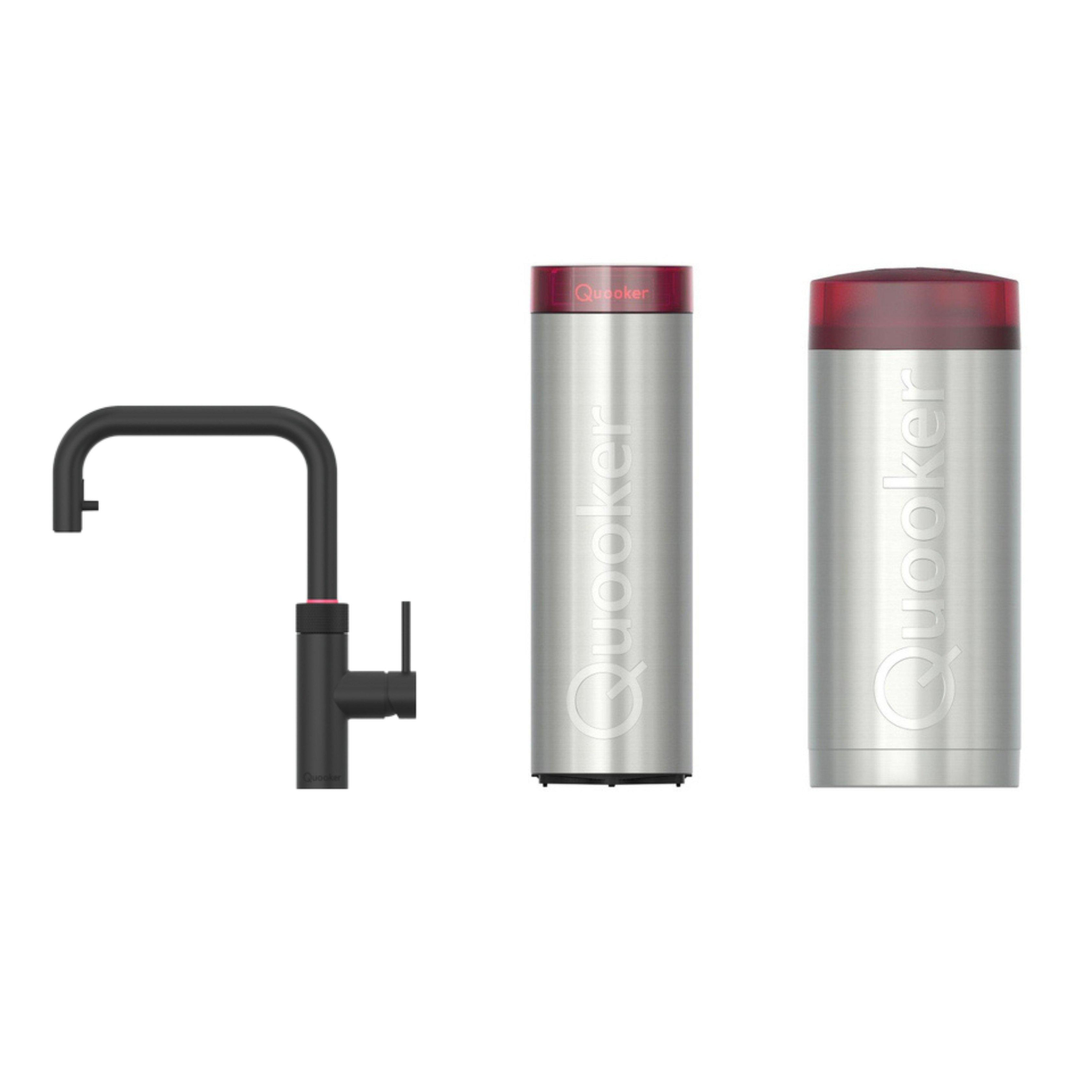 Quooker BE Flex Square Robinet d'eau bouillante - bec pivotant & extractible - Combi incl. réservoir Cube - Eau chaude / bouillante / pétillante / filtrée - noir